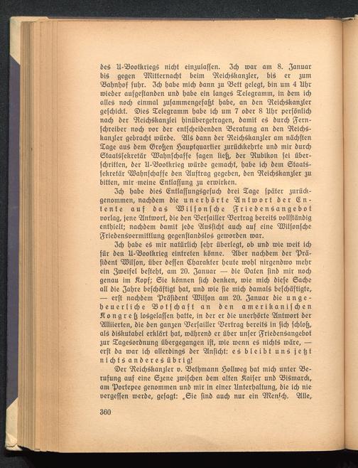 Anhang. Zwei Reden vor dem parlamentarischen Untersuchungs-Ausschuß über den U-Bootkrieg und den Friedensschritt Wilsons. 12. und 14. November 1919.