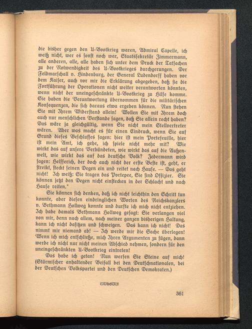 Anhang. Zwei Reden vor dem parlamentarischen Untersuchungs-Ausschuß über den U-Bootkrieg und den Friedensschritt Wilsons. 12. und 14. November 1919.