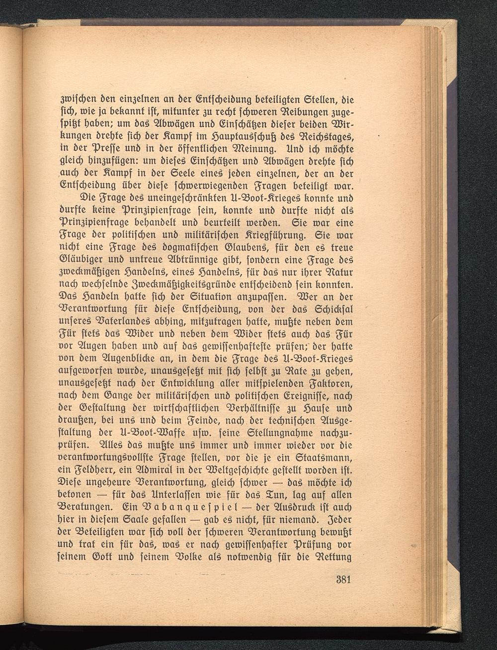 Anhang. Zwei Reden vor dem parlamentarischen Untersuchungs-Ausschuß über den U-Bootkrieg und den Friedensschritt Wilsons. 12. und 14. November 1919.
