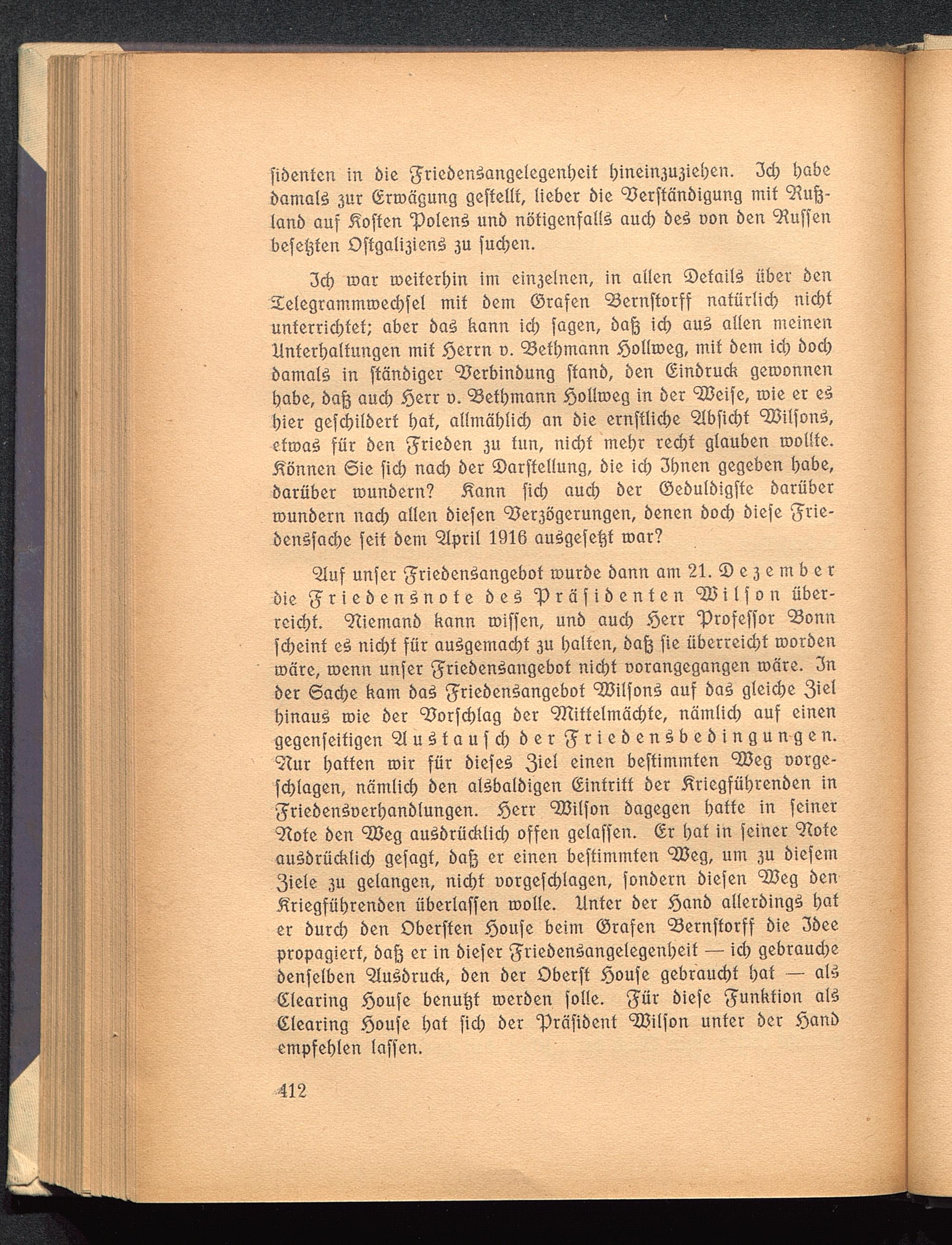 Anhang. Zwei Reden vor dem parlamentarischen Untersuchungs-Ausschuß über den U-Bootkrieg und den Friedensschritt Wilsons. 12. und 14. November 1919.