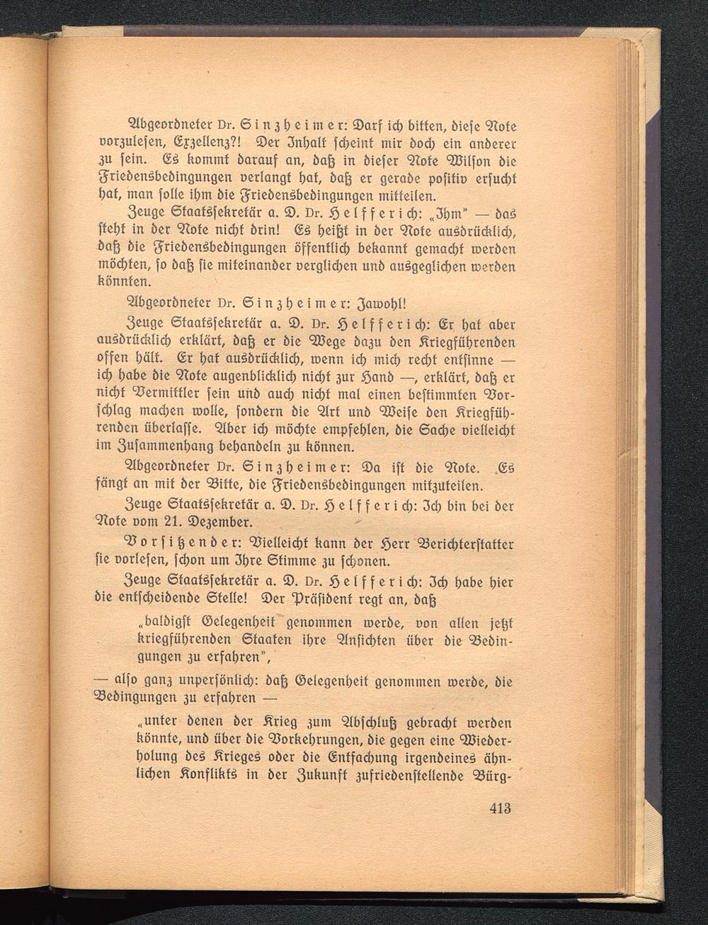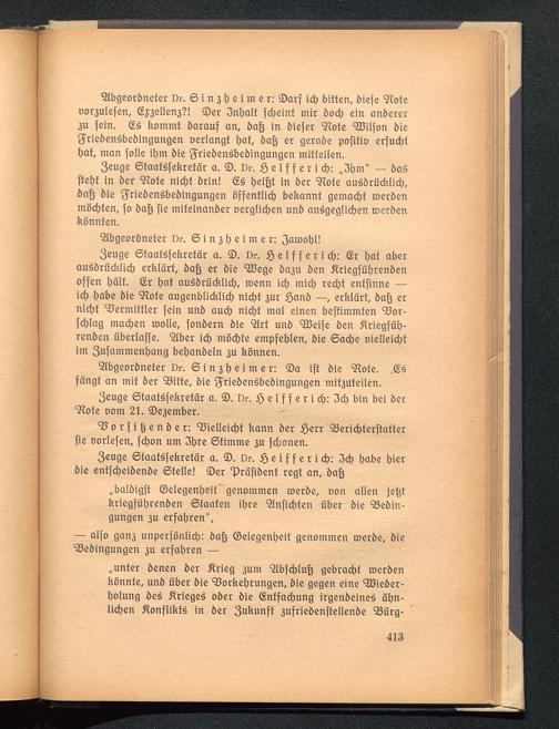 Anhang. Zwei Reden vor dem parlamentarischen Untersuchungs-Ausschuß über den U-Bootkrieg und den Friedensschritt Wilsons. 12. und 14. November 1919.