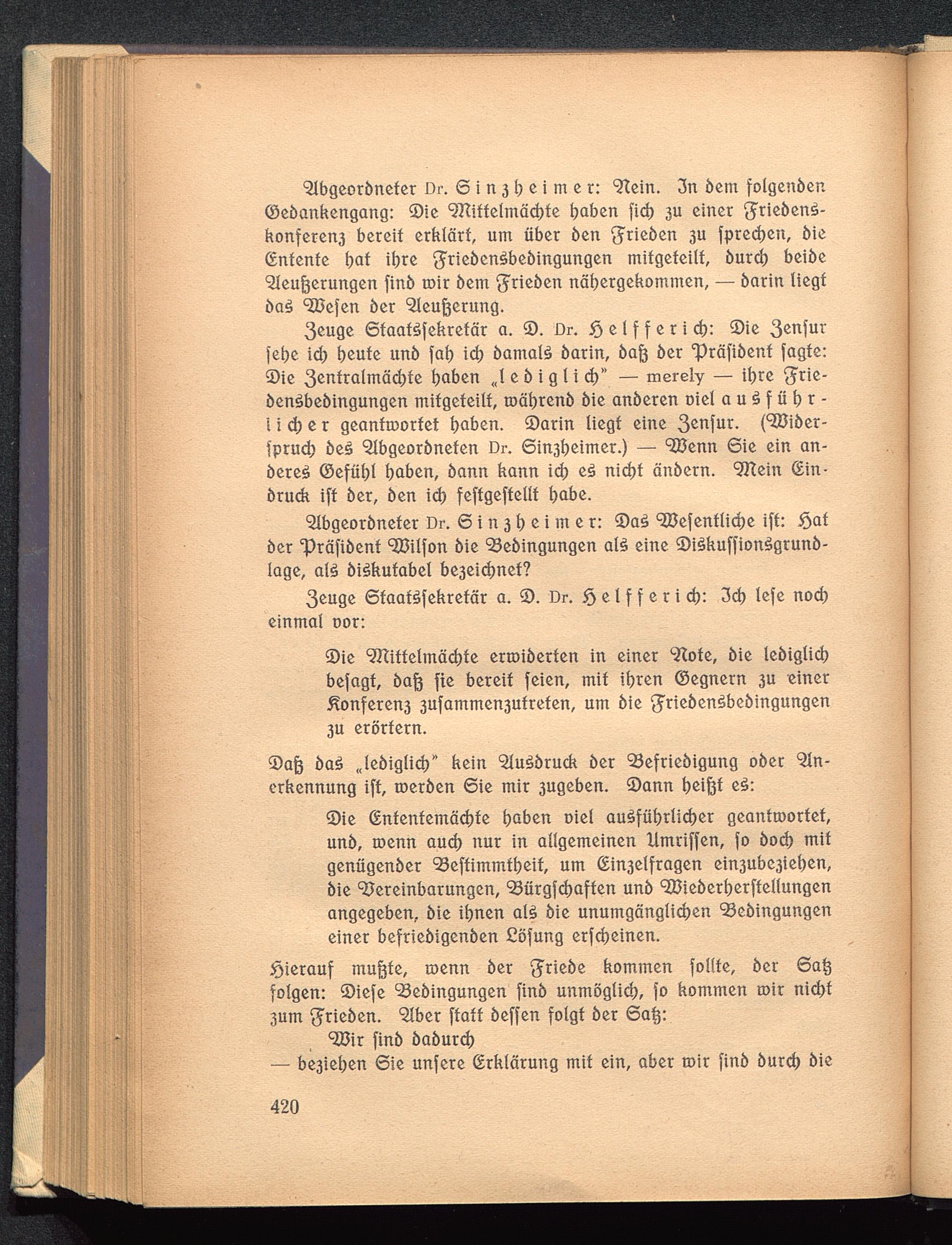 Anhang. Zwei Reden vor dem parlamentarischen Untersuchungs-Ausschuß über den U-Bootkrieg und den Friedensschritt Wilsons. 12. und 14. November 1919.