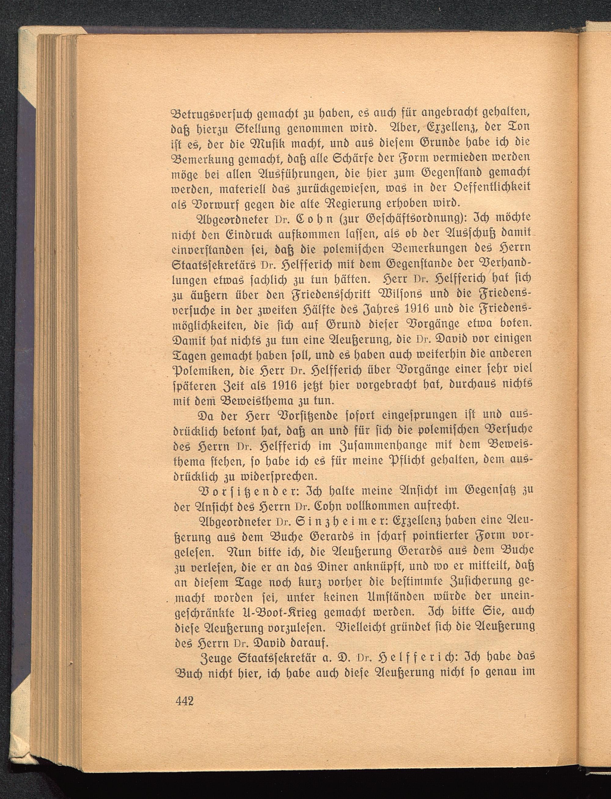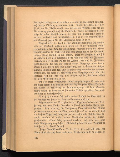 Anhang. Zwei Reden vor dem parlamentarischen Untersuchungs-Ausschuß über den U-Bootkrieg und den Friedensschritt Wilsons. 12. und 14. November 1919.
