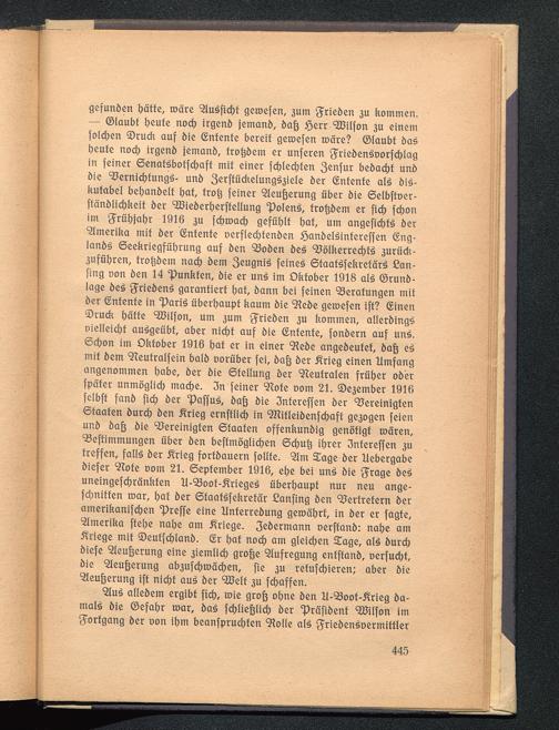 Anhang. Zwei Reden vor dem parlamentarischen Untersuchungs-Ausschuß über den U-Bootkrieg und den Friedensschritt Wilsons. 12. und 14. November 1919.