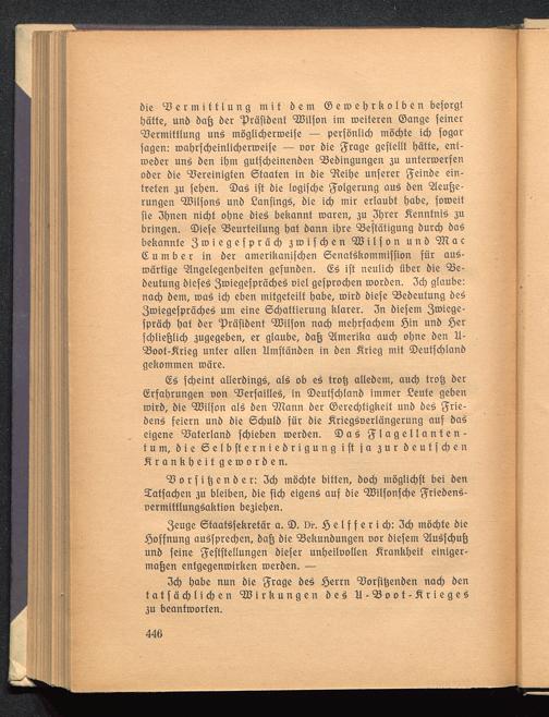 Anhang. Zwei Reden vor dem parlamentarischen Untersuchungs-Ausschuß über den U-Bootkrieg und den Friedensschritt Wilsons. 12. und 14. November 1919.