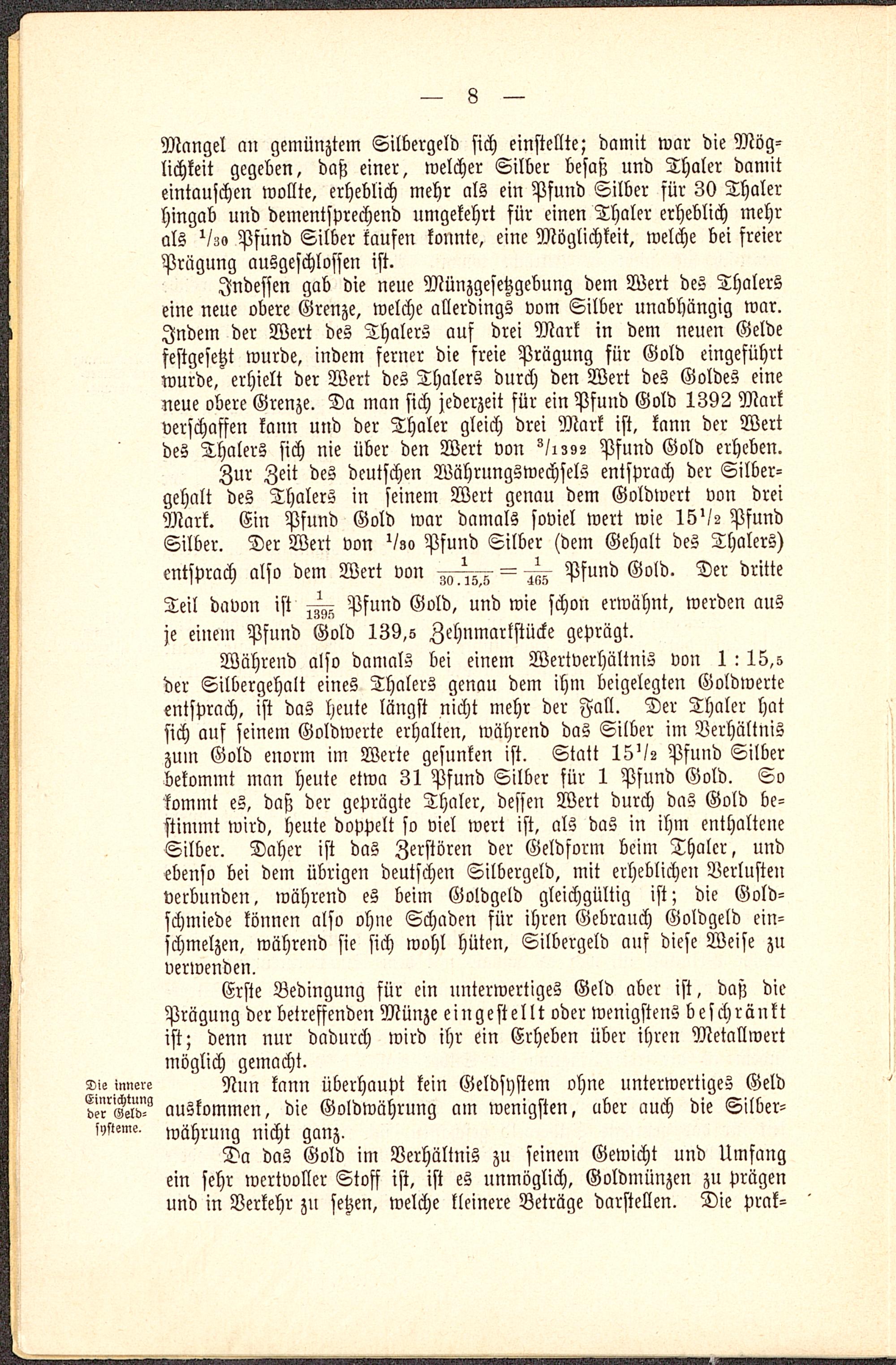 b) Die volkswirtschaftliche Seite der Währungsfrage.
