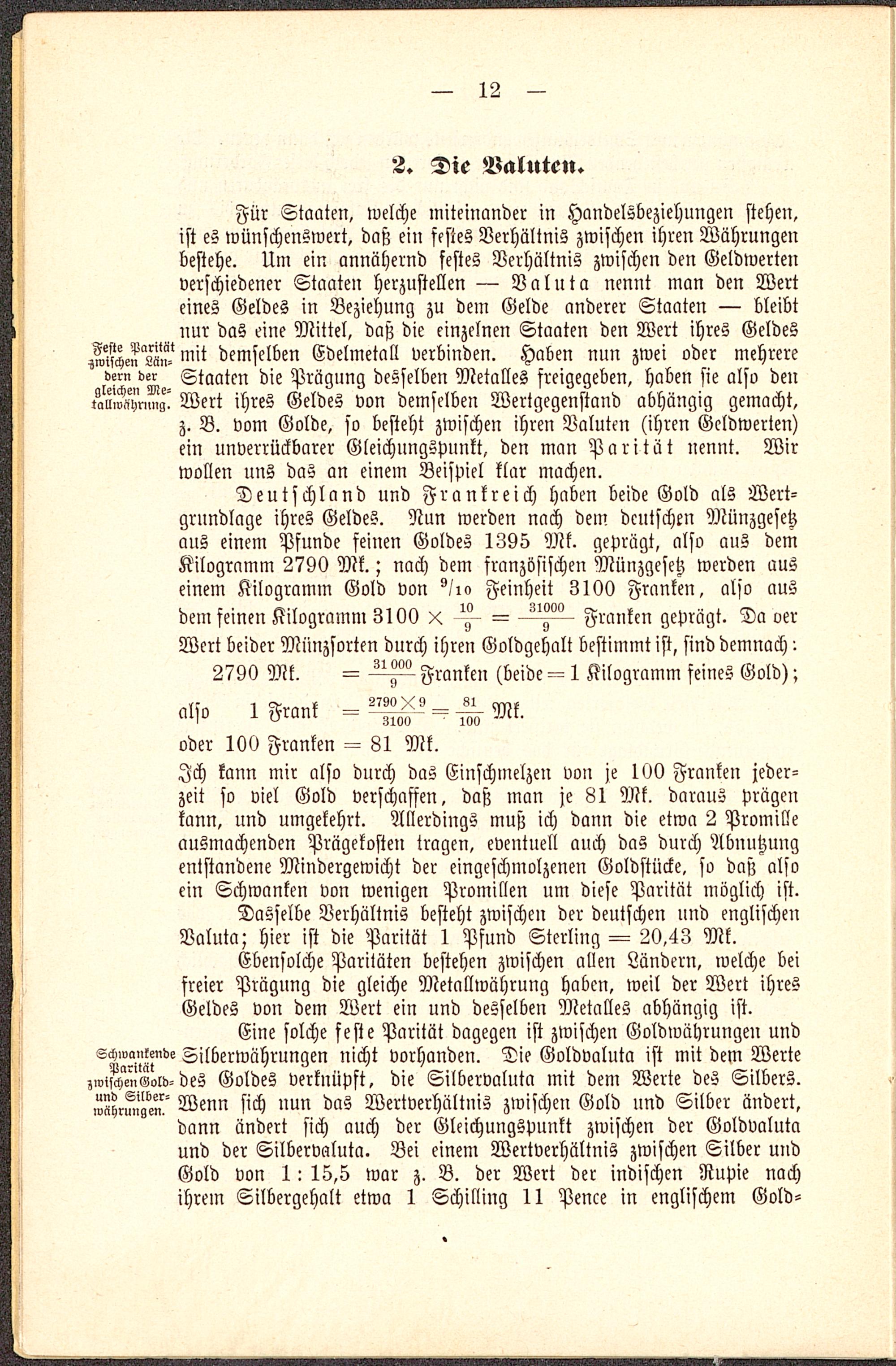 b) Die volkswirtschaftliche Seite der Währungsfrage.