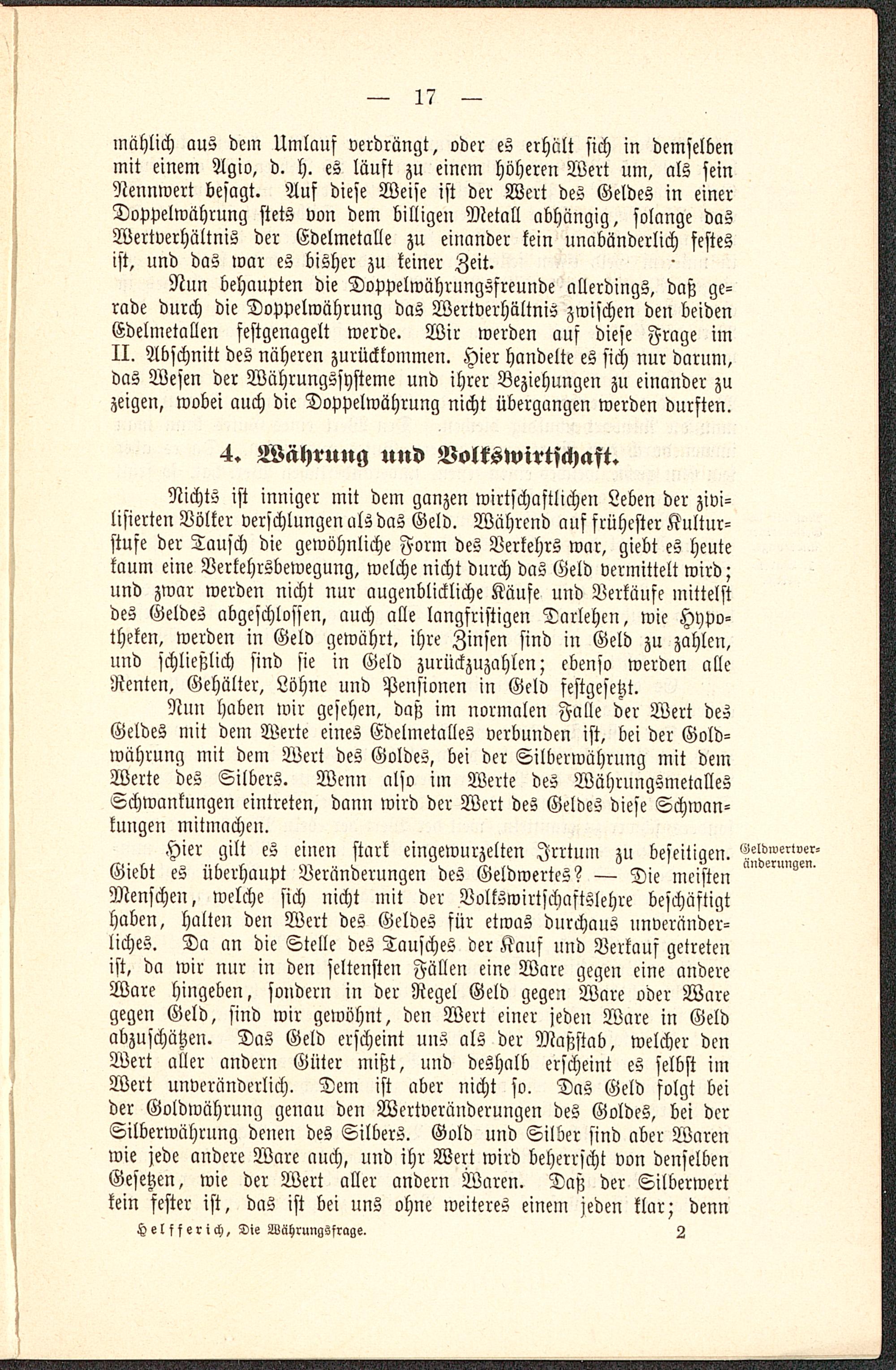 b) Die volkswirtschaftliche Seite der Währungsfrage.