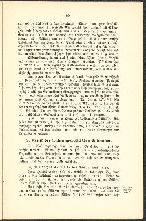 b) Die volkswirtschaftliche Seite der Währungsfrage.
