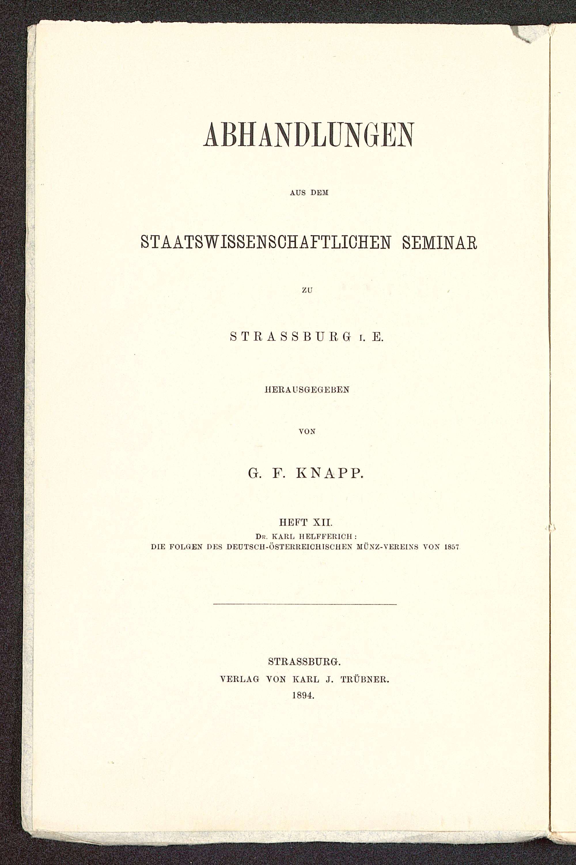 Die Folgen des deutsch-österreichischen Münz-Vereins von 1857 : ein Beitrag zur Geld- und Währungs-Theorie / von Karl Helfferich