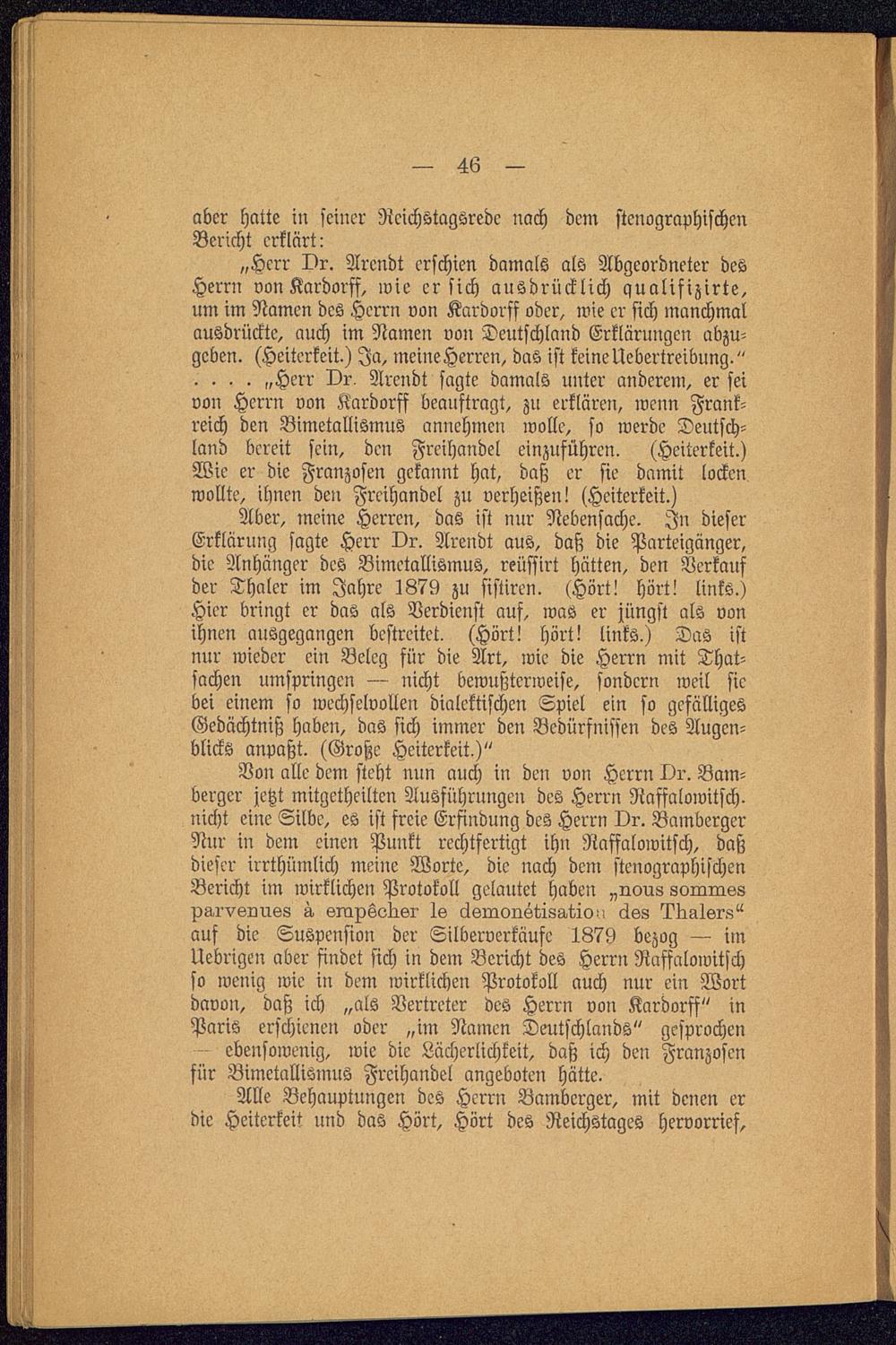 Die Silberenquete : Eine Auseinandersetzung mit Ludwig Bamberger / Von Otto Arendt