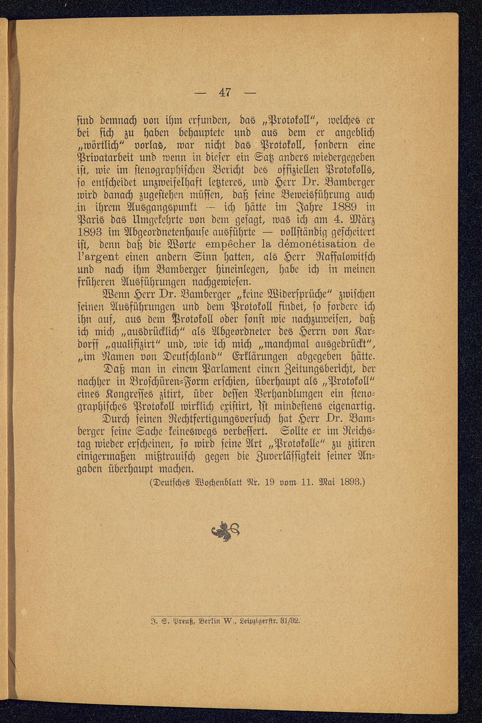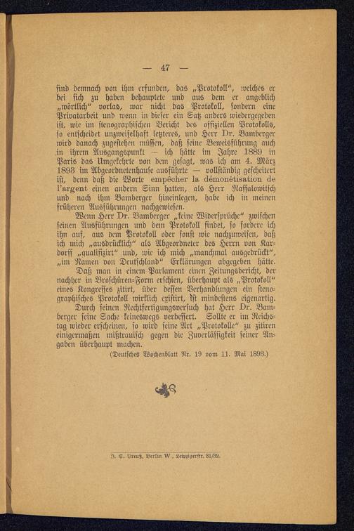 Die Silberenquete : Eine Auseinandersetzung mit Ludwig Bamberger / Von Otto Arendt