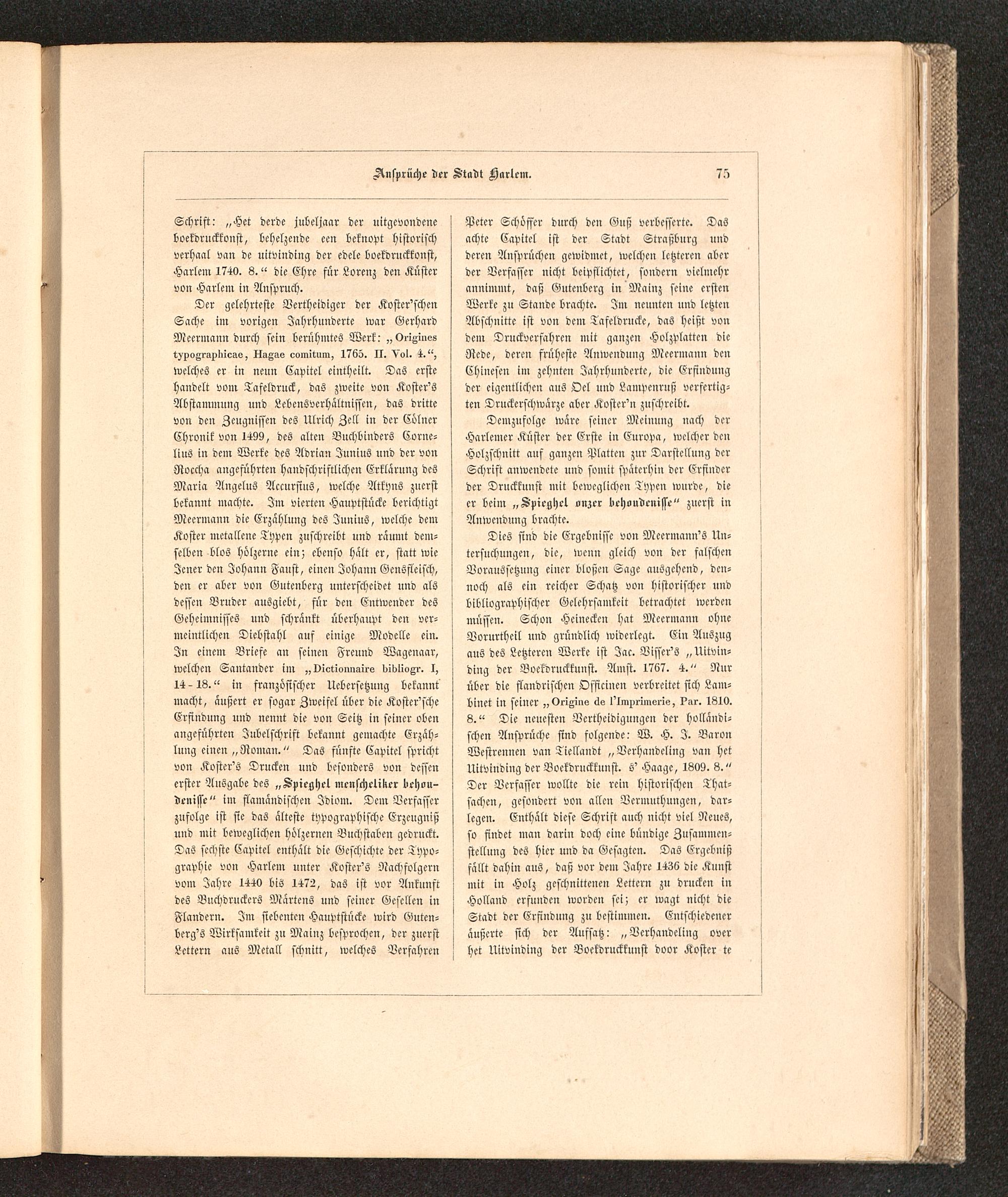 Geschichte der Buchdruckerkunst in ihrer Entstehung und Ausbildung : Ein Denkmal zur vierten Säcular-Feier der Erfindung der Typographie ; Mit einer reichen Sammlung in Holz und Metall geschnittener Facsimiles der seltensten Holztafeldrucke, Nachbildungen von Typen alter berühmter Officinen und Proben von Kunstdrucken nach den neuesten Erfindungen unserer Zeit / von Dr. Karl Falkenstein, Königl. Sächs. Hofrathe und Oberbibliothekar, ...