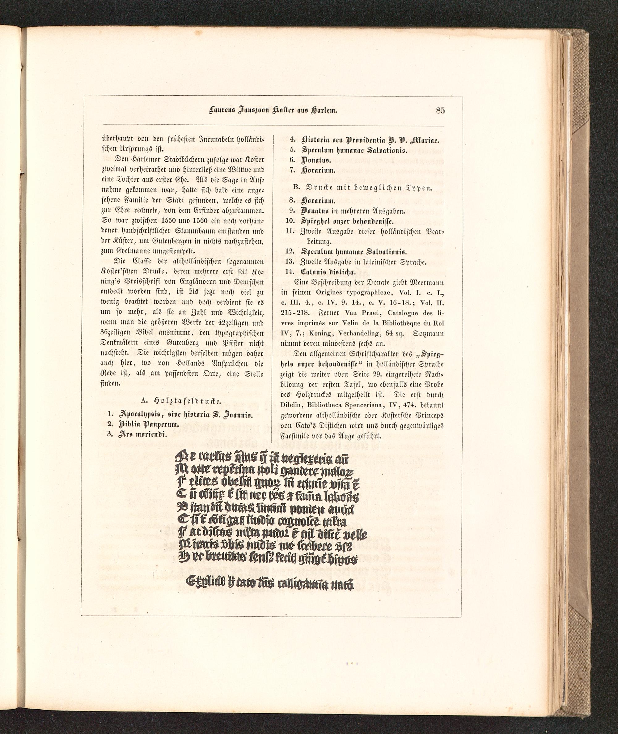 Geschichte der Buchdruckerkunst in ihrer Entstehung und Ausbildung : Ein Denkmal zur vierten Säcular-Feier der Erfindung der Typographie ; Mit einer reichen Sammlung in Holz und Metall geschnittener Facsimiles der seltensten Holztafeldrucke, Nachbildungen von Typen alter berühmter Officinen und Proben von Kunstdrucken nach den neuesten Erfindungen unserer Zeit / von Dr. Karl Falkenstein, Königl. Sächs. Hofrathe und Oberbibliothekar, ...