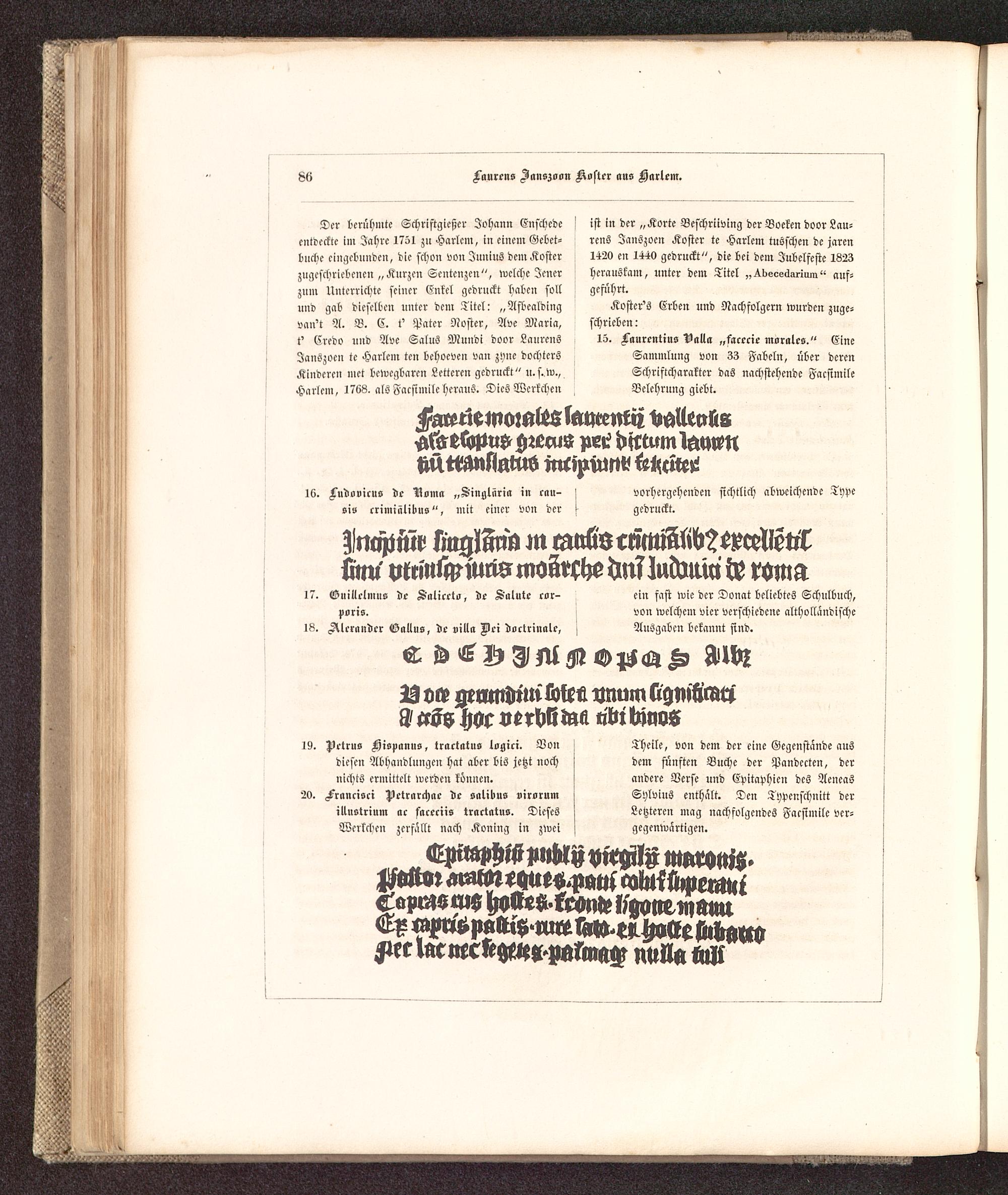 Geschichte der Buchdruckerkunst in ihrer Entstehung und Ausbildung : Ein Denkmal zur vierten Säcular-Feier der Erfindung der Typographie ; Mit einer reichen Sammlung in Holz und Metall geschnittener Facsimiles der seltensten Holztafeldrucke, Nachbildungen von Typen alter berühmter Officinen und Proben von Kunstdrucken nach den neuesten Erfindungen unserer Zeit / von Dr. Karl Falkenstein, Königl. Sächs. Hofrathe und Oberbibliothekar, ...