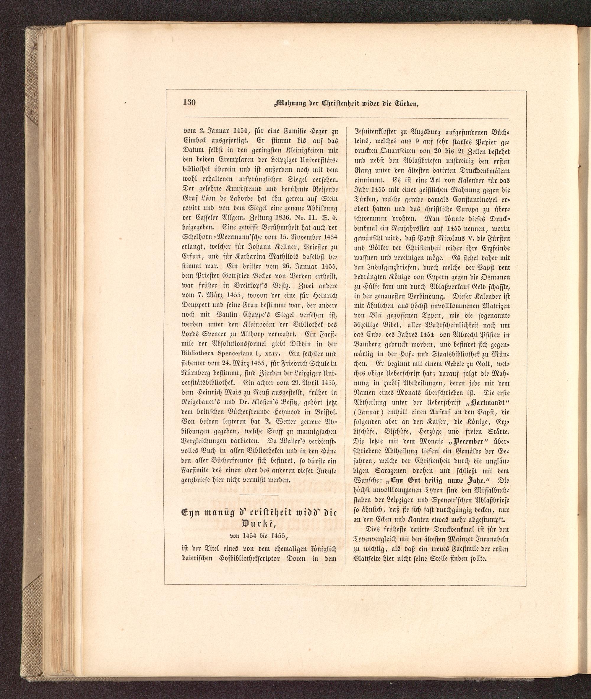 Geschichte der Buchdruckerkunst in ihrer Entstehung und Ausbildung : Ein Denkmal zur vierten Säcular-Feier der Erfindung der Typographie ; Mit einer reichen Sammlung in Holz und Metall geschnittener Facsimiles der seltensten Holztafeldrucke, Nachbildungen von Typen alter berühmter Officinen und Proben von Kunstdrucken nach den neuesten Erfindungen unserer Zeit / von Dr. Karl Falkenstein, Königl. Sächs. Hofrathe und Oberbibliothekar, ...