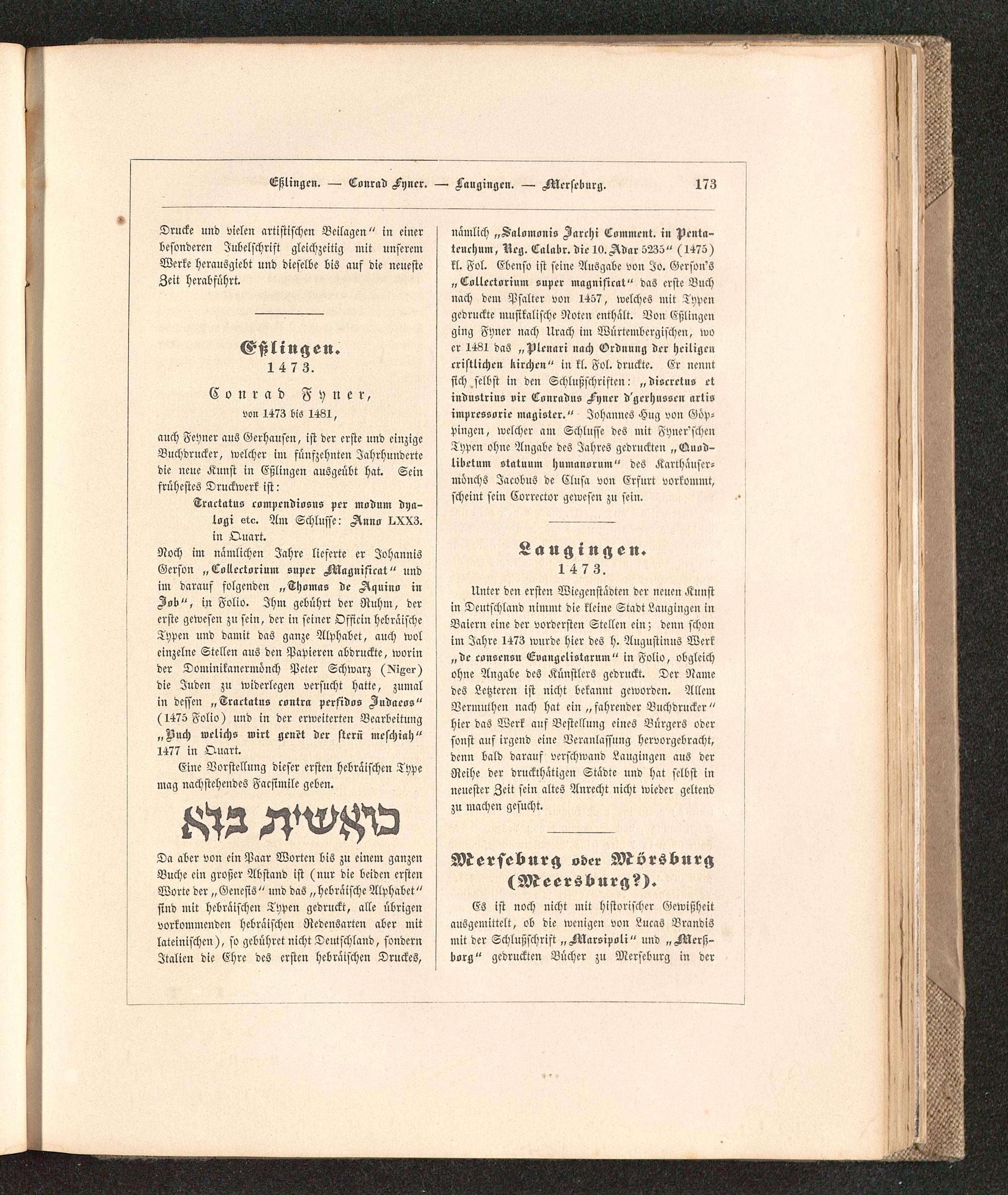 Geschichte der Buchdruckerkunst in ihrer Entstehung und Ausbildung : Ein Denkmal zur vierten Säcular-Feier der Erfindung der Typographie ; Mit einer reichen Sammlung in Holz und Metall geschnittener Facsimiles der seltensten Holztafeldrucke, Nachbildungen von Typen alter berühmter Officinen und Proben von Kunstdrucken nach den neuesten Erfindungen unserer Zeit / von Dr. Karl Falkenstein, Königl. Sächs. Hofrathe und Oberbibliothekar, ...