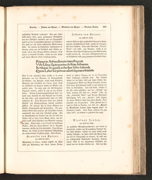 Geschichte der Buchdruckerkunst in ihrer Entstehung und Ausbildung : Ein Denkmal zur vierten Säcular-Feier der Erfindung der Typographie ; Mit einer reichen Sammlung in Holz und Metall geschnittener Facsimiles der seltensten Holztafeldrucke, Nachbildungen von Typen alter berühmter Officinen und Proben von Kunstdrucken nach den neuesten Erfindungen unserer Zeit / von Dr. Karl Falkenstein, Königl. Sächs. Hofrathe und Oberbibliothekar, ...
