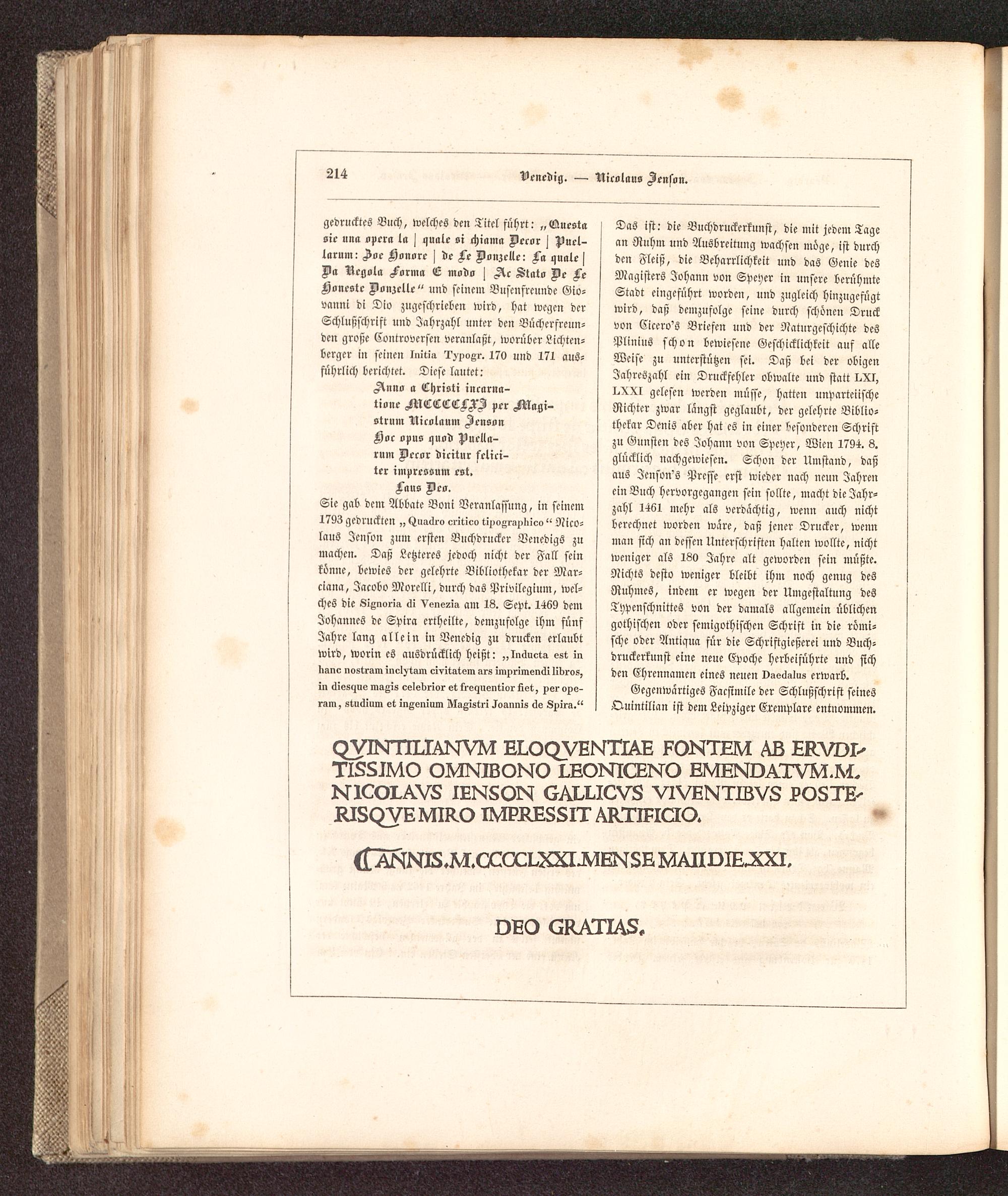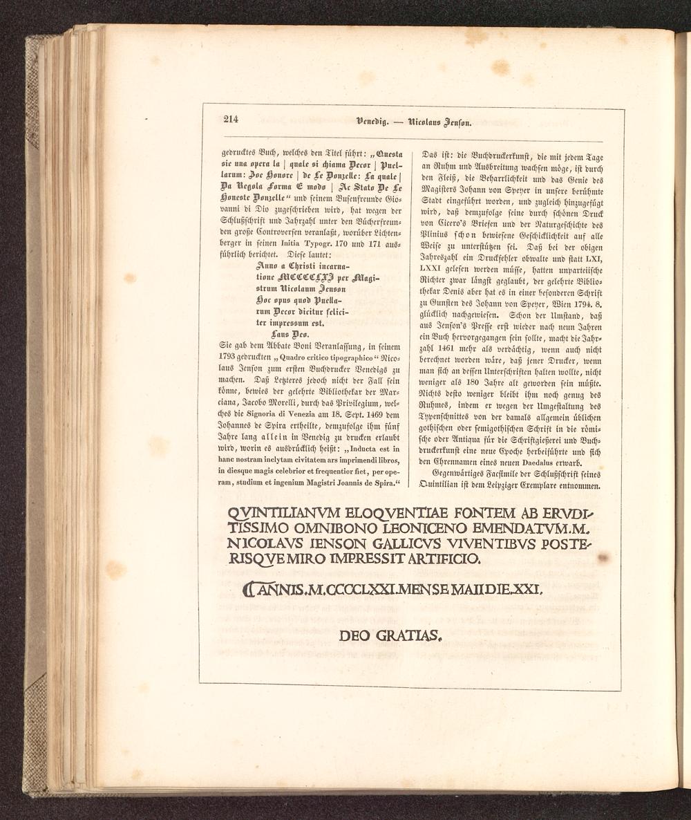 Geschichte der Buchdruckerkunst in ihrer Entstehung und Ausbildung : Ein Denkmal zur vierten Säcular-Feier der Erfindung der Typographie ; Mit einer reichen Sammlung in Holz und Metall geschnittener Facsimiles der seltensten Holztafeldrucke, Nachbildungen von Typen alter berühmter Officinen und Proben von Kunstdrucken nach den neuesten Erfindungen unserer Zeit / von Dr. Karl Falkenstein, Königl. Sächs. Hofrathe und Oberbibliothekar, ...