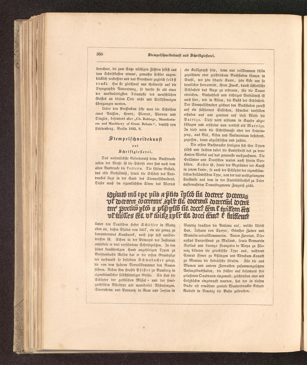 Geschichte der Buchdruckerkunst in ihrer Entstehung und Ausbildung : Ein Denkmal zur vierten Säcular-Feier der Erfindung der Typographie ; Mit einer reichen Sammlung in Holz und Metall geschnittener Facsimiles der seltensten Holztafeldrucke, Nachbildungen von Typen alter berühmter Officinen und Proben von Kunstdrucken nach den neuesten Erfindungen unserer Zeit / von Dr. Karl Falkenstein, Königl. Sächs. Hofrathe und Oberbibliothekar, ...