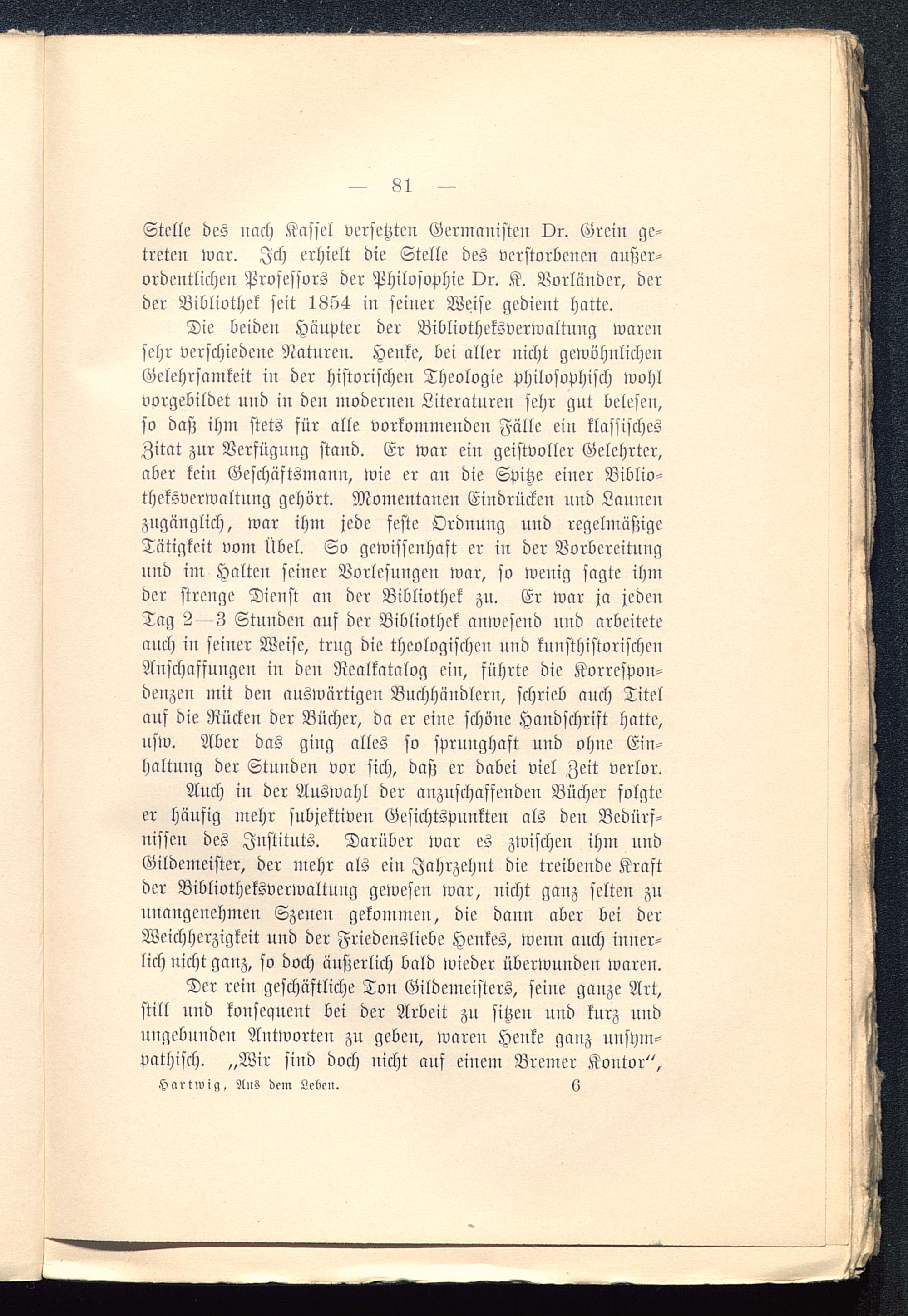 Aus dem Leben eines deutschen Bibliothekars : Erinnerungen und biographische Aufsätze / von Otto Hartwig. [Hrsg.: Erich Liesegang]
