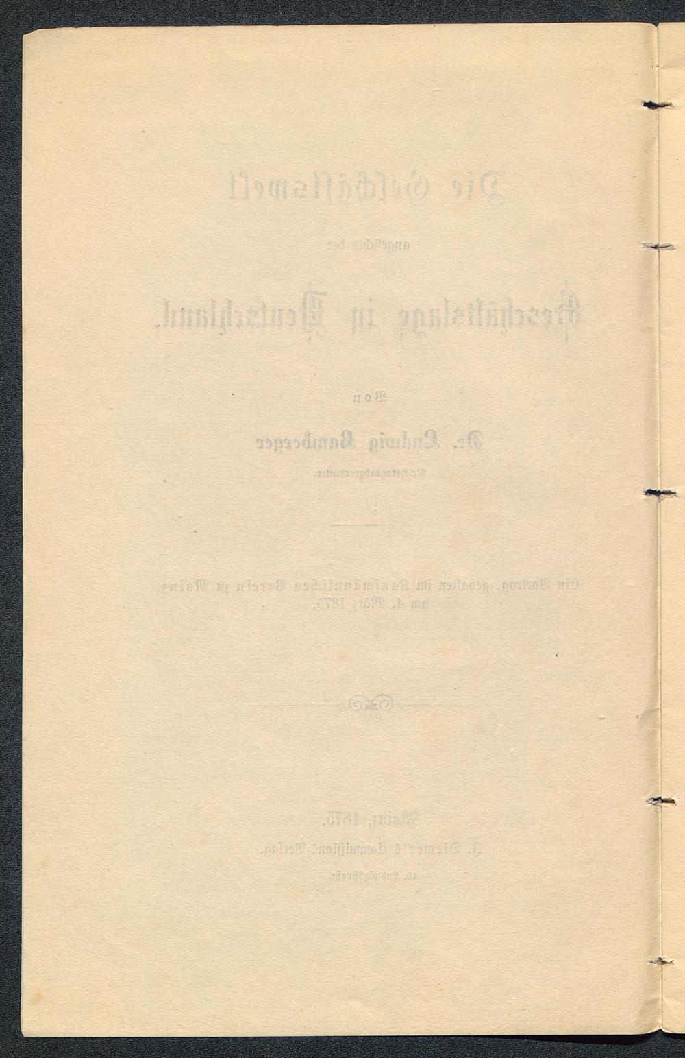 Die Geschäftswelt angesichts der Geschäftslage in Deutschland : ein Vortrag gehalten ... zu Mainz ... 1875 / von Dr. Ludwig Bamberger, Reichstagsabgeordneter
