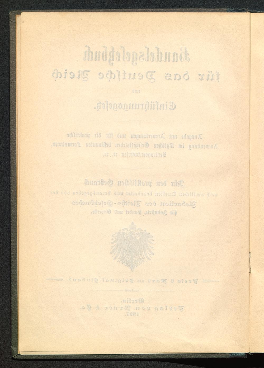 Handelsgesetzbuch für das Deutsche Reich und Einführungsgesetz : Ausgabe mit Anmerkungen und für die praktische Anwendung im täglichen Geschäftsleben bestimmten Formularen, Vertragsentwürfen ... / für den praktischen Gebrauch nach amtlichen Quellen bearb. und hrsg. von der Red. des Reichs-Gesetzbuches für Industrie, Handel und Gewerbe