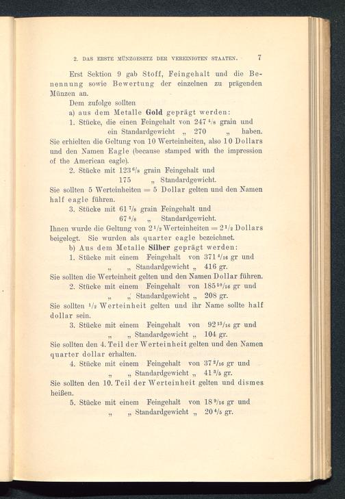 VIII. Abschnitt. Analysierung der heute giltigen Geldverfassung der Vereinigten Staaten