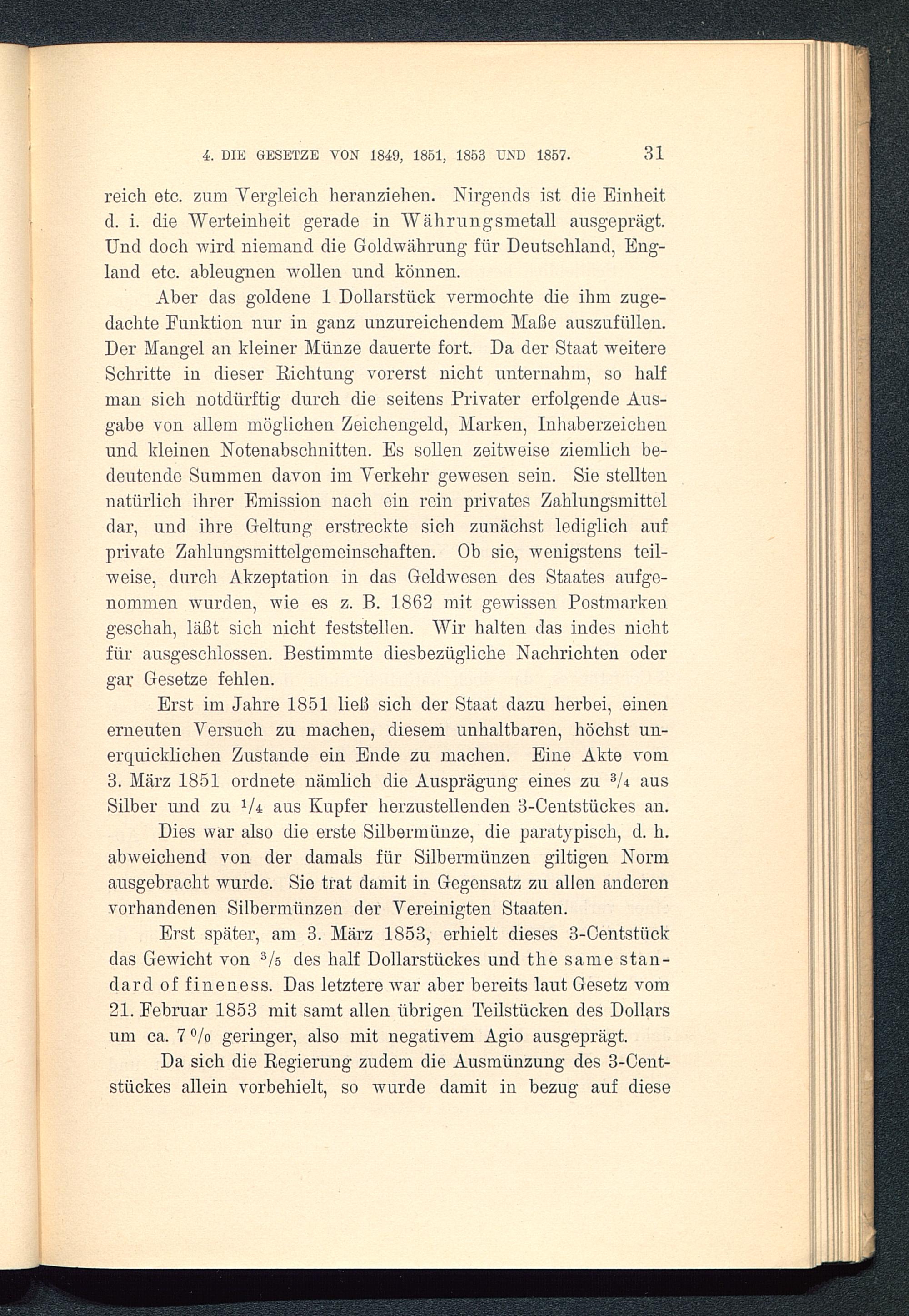 IV. Abschnitt. Das Gesetz von 1873, der Übergang zur Goldwährung. (De jure)