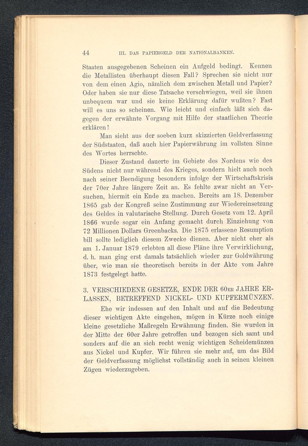 IV. Abschnitt. Das Gesetz von 1873, der Übergang zur Goldwährung. (De jure)