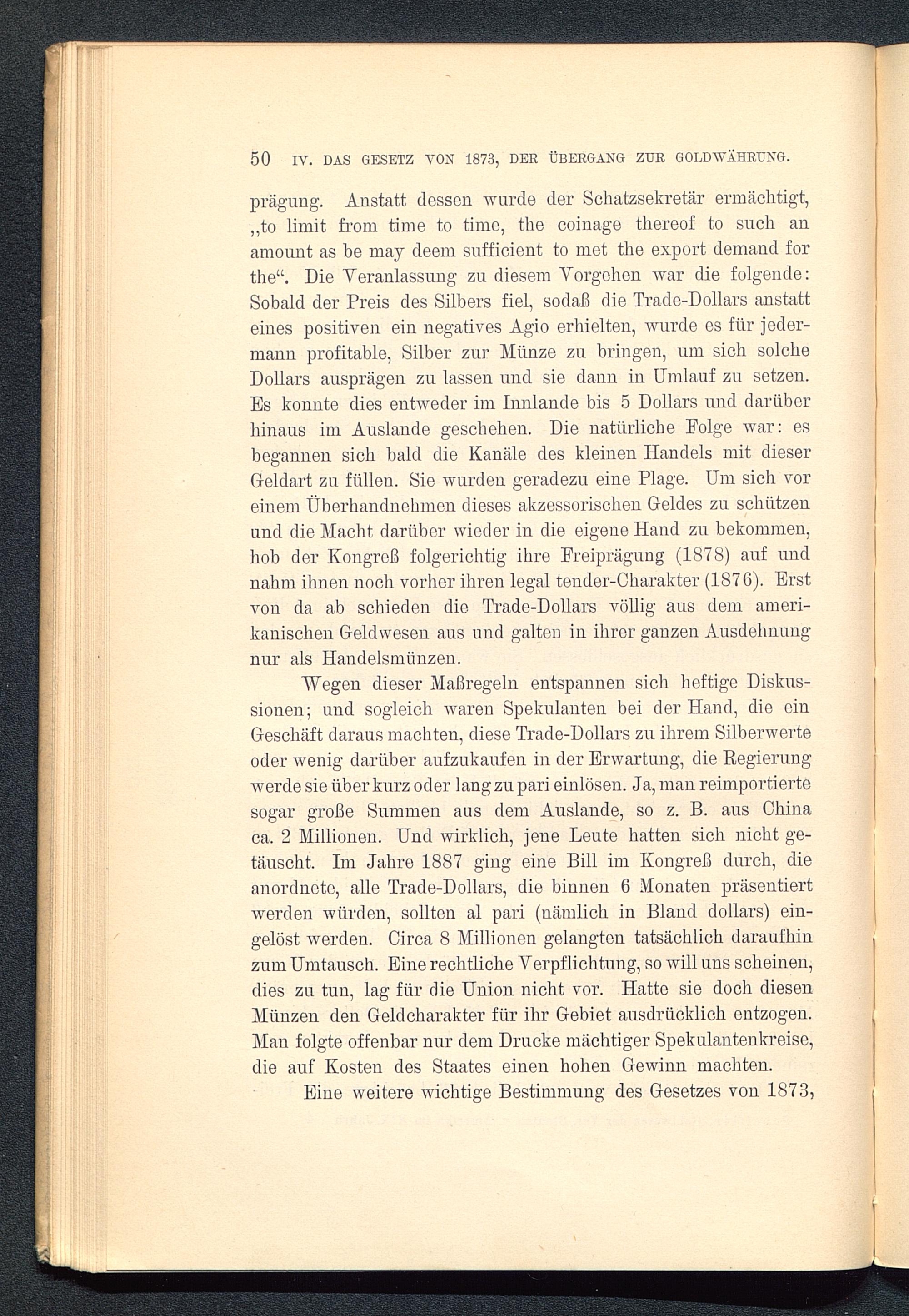 IV. Abschnitt. Das Gesetz von 1873, der Übergang zur Goldwährung. (De jure)