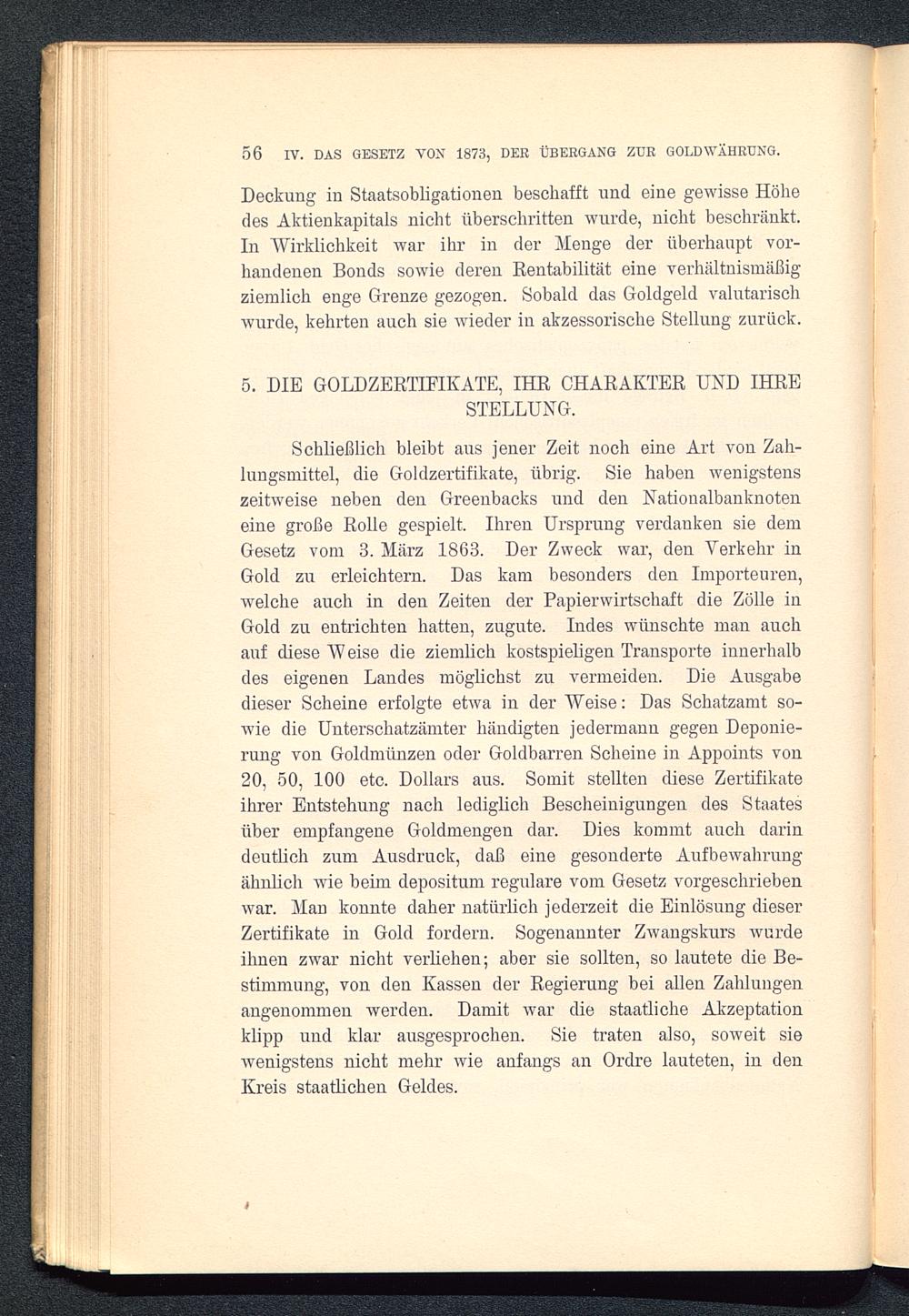 IV. Abschnitt. Das Gesetz von 1873, der Übergang zur Goldwährung. (De jure)