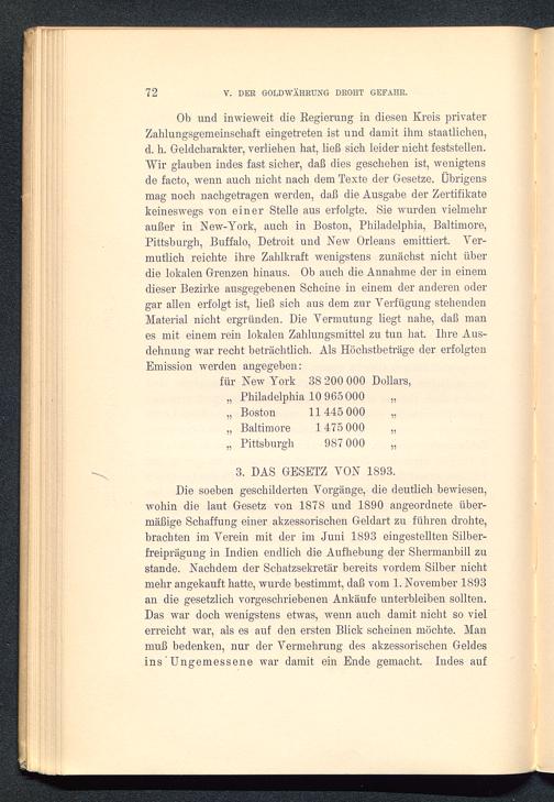 V. Abschnitt 1878-1895. Der Goldwährung droht Gefahr infolge übermässiger Schaffung akzessorischen Geldes
