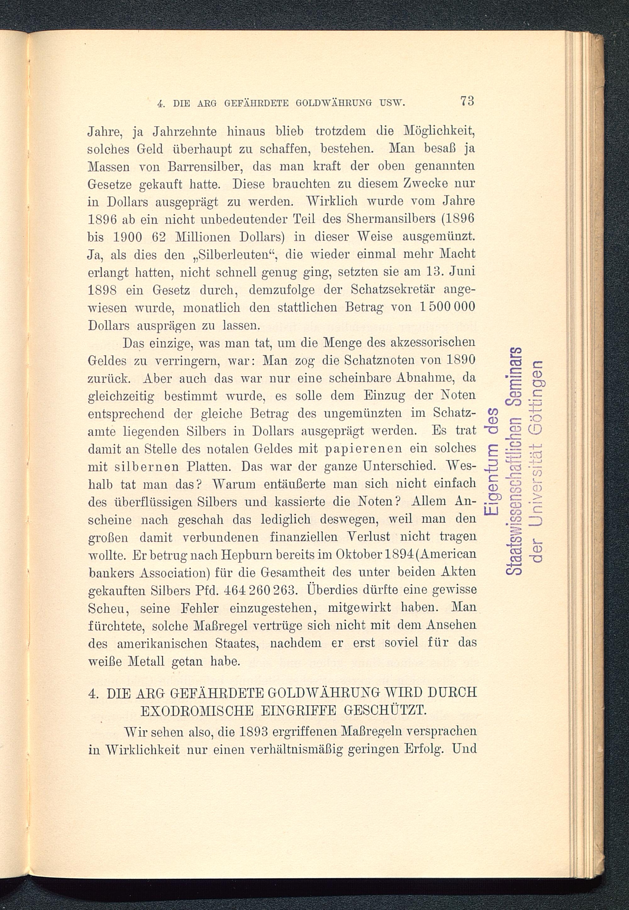 IV. Abschnitt. Das Gesetz von 1873, der Übergang zur Goldwährung. (De jure)