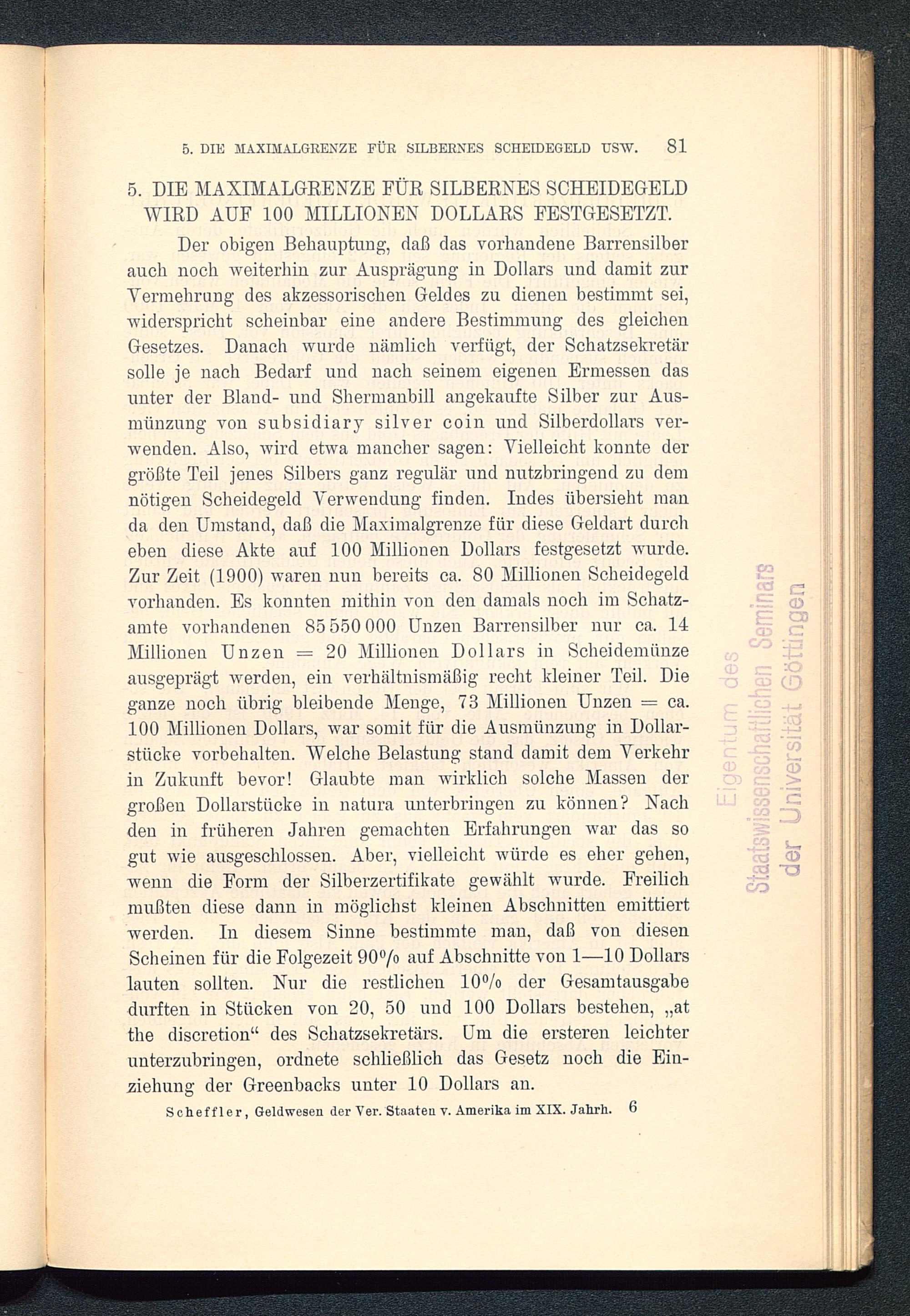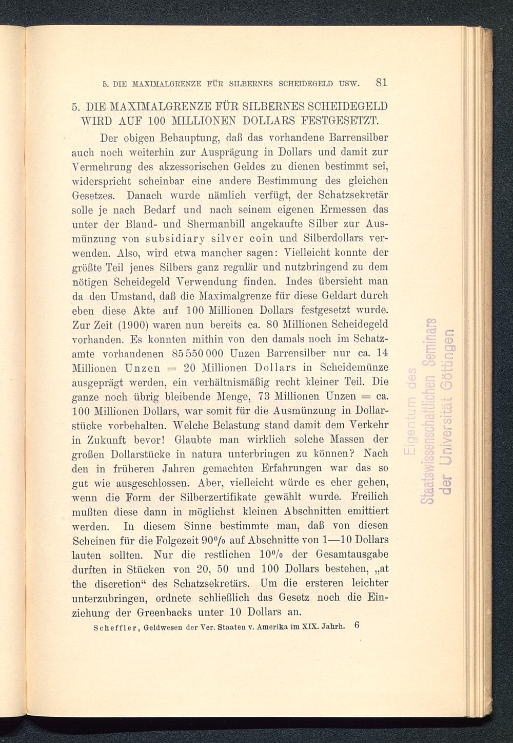Das Geldwesen der Vereinigten Staaten von Amerika im 19. Jahrhundert : vom Standpunkte des Staates im Überblick / von Johannes Scheffler