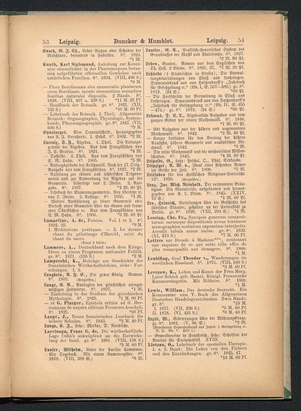 Verlagskatalog von Duncker & Humblot in Leipzig