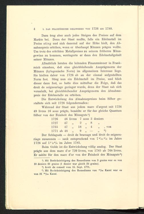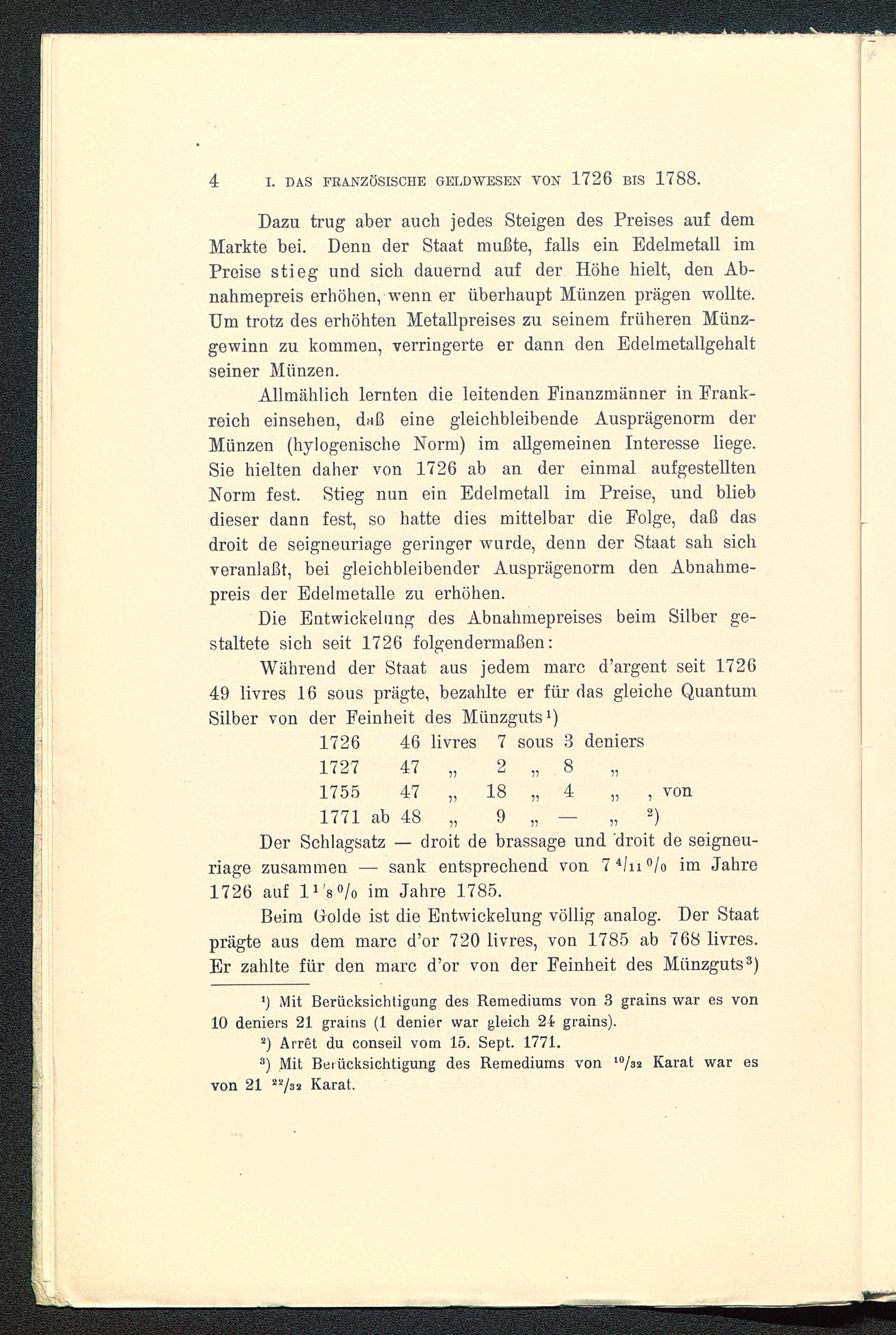 I. Abschnitt. Das französische Geldwesen von 1726 bis 1788: Die Silberwährung