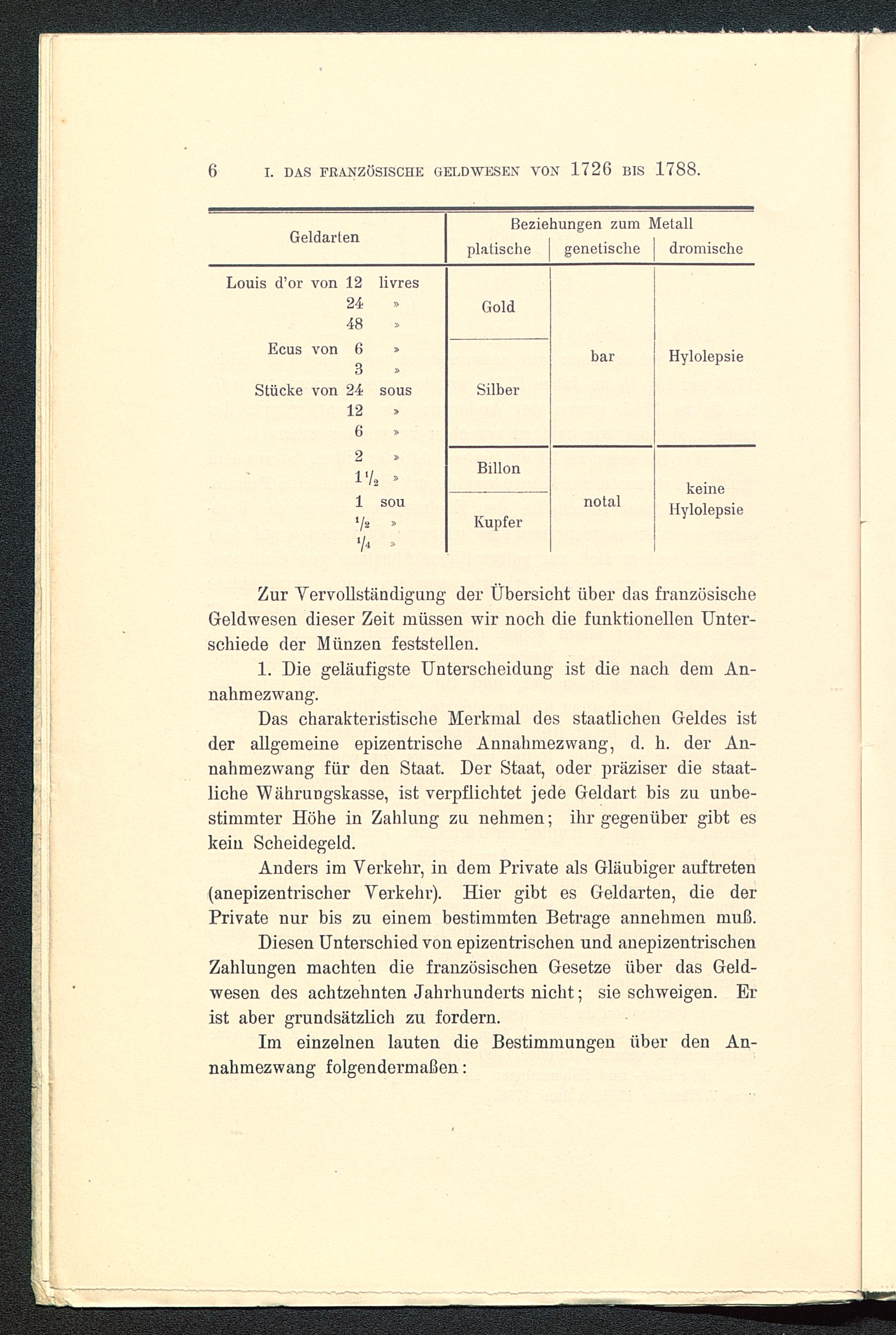 I. Abschnitt. Das französische Geldwesen von 1726 bis 1788: Die Silberwährung