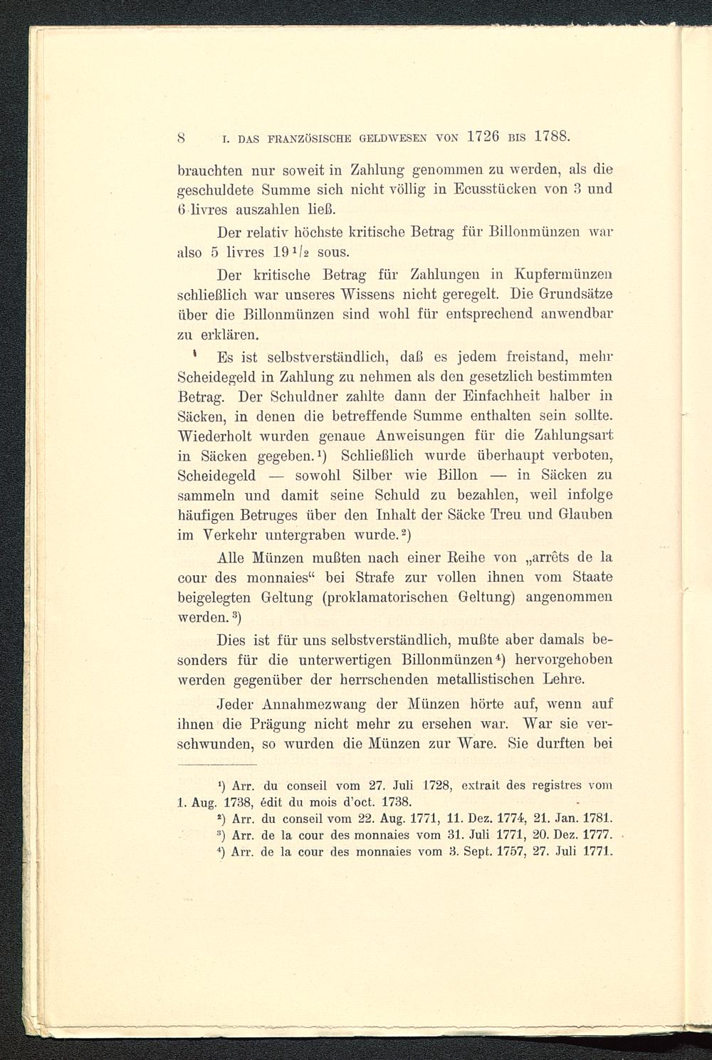 I. Abschnitt. Das französische Geldwesen von 1726 bis 1788: Die Silberwährung
