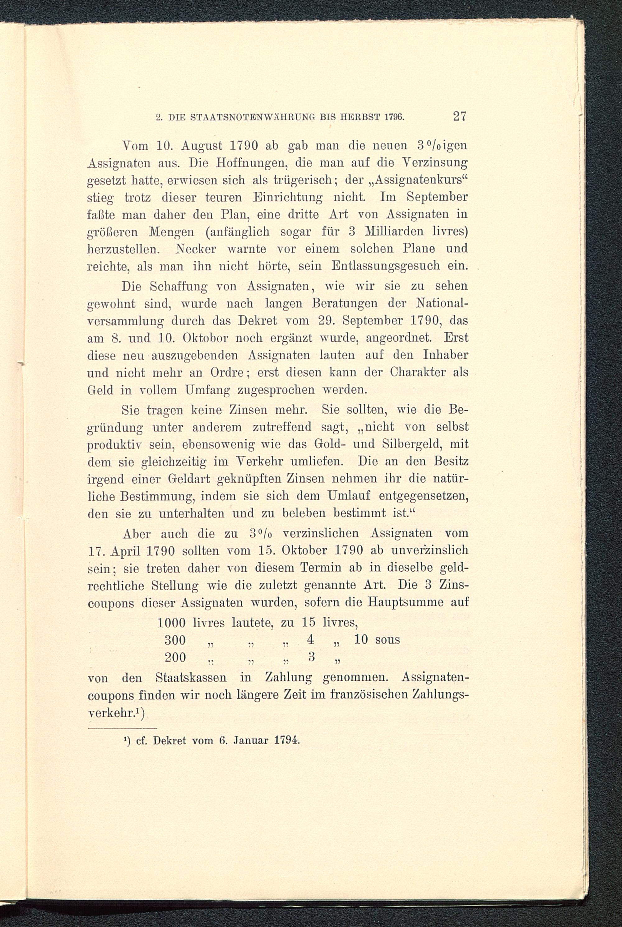 § 2. Die Staatsnotenwährung unter dem Nationalkonvent und im 1. Jahre der Direktoralherrschaft (bis Herbst 1796)