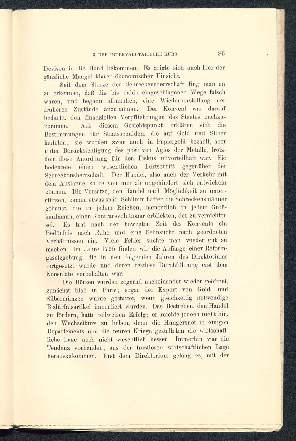 III. Kapitel. Der Geldverkehr Frankreichs mit dem Ausland von 1789 bis 1796: Der intervalutarische Kurs