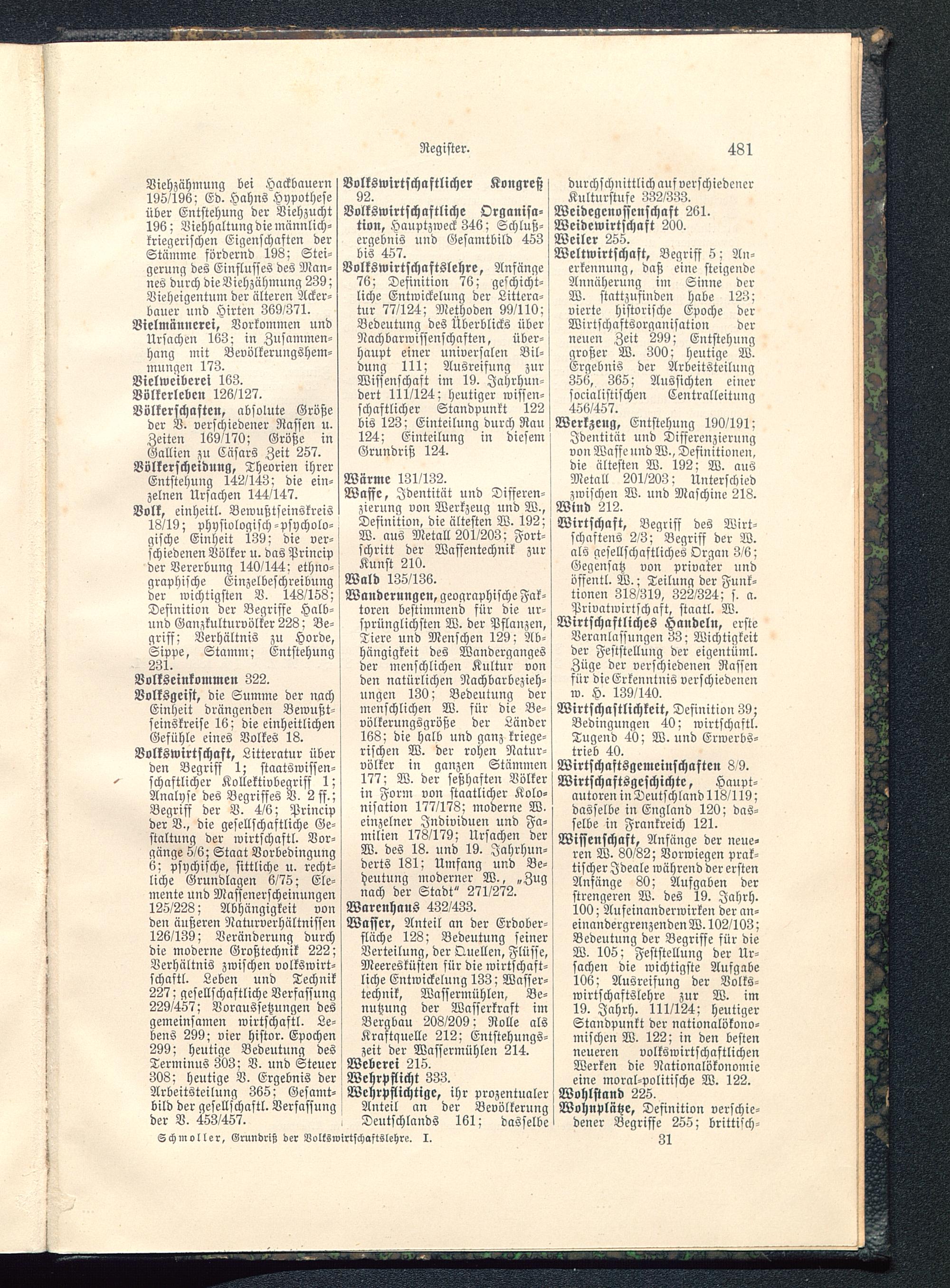 1 (1900) Begriff : psychologische und sittliche Grundlage ; Literatur und Methode ; Land, Leute und Technik ; die gesellschaftliche Verfassung der Volkswirtschaft