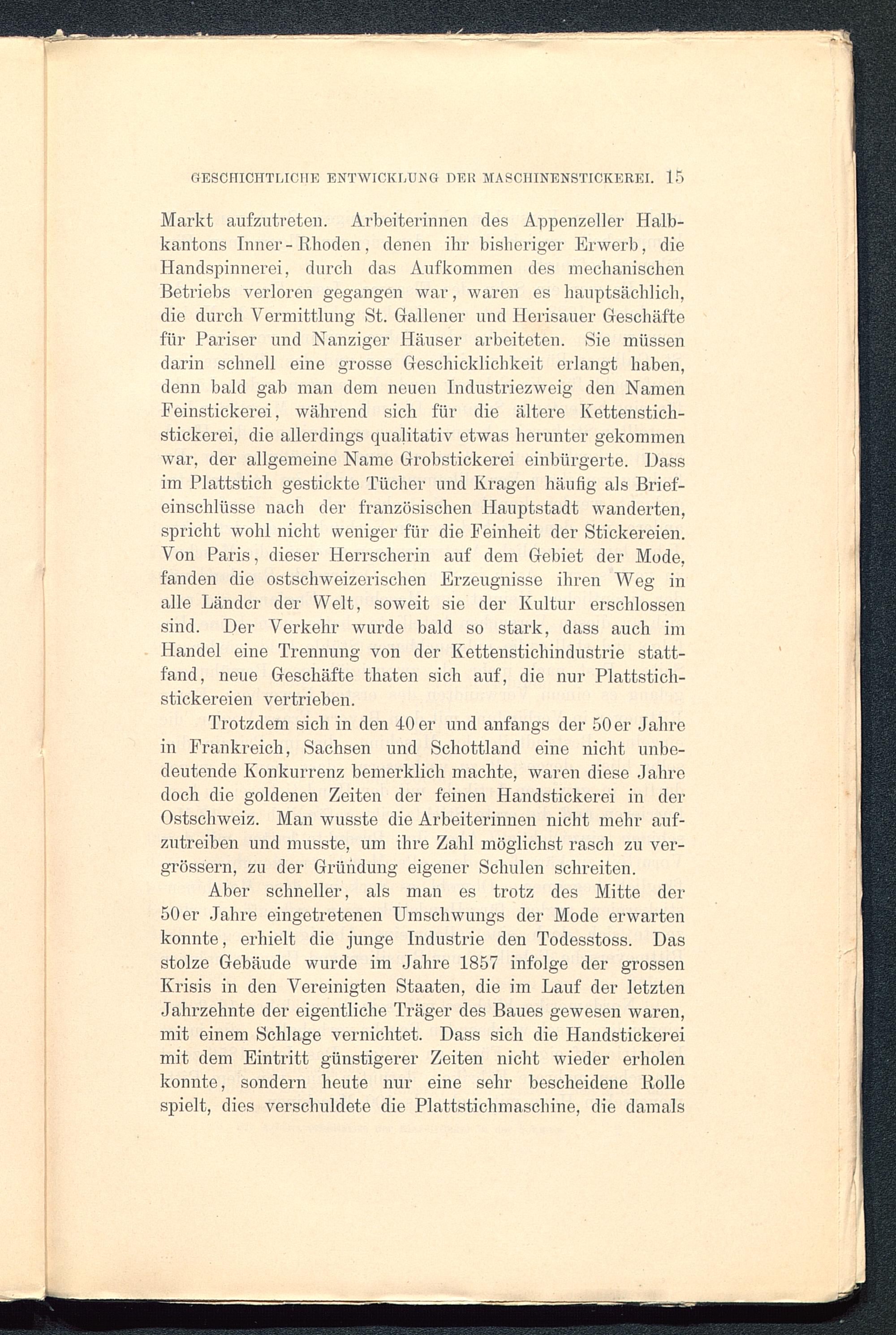 I. Kapitel. Technik der Maschinenstickerei, Produkte und Export