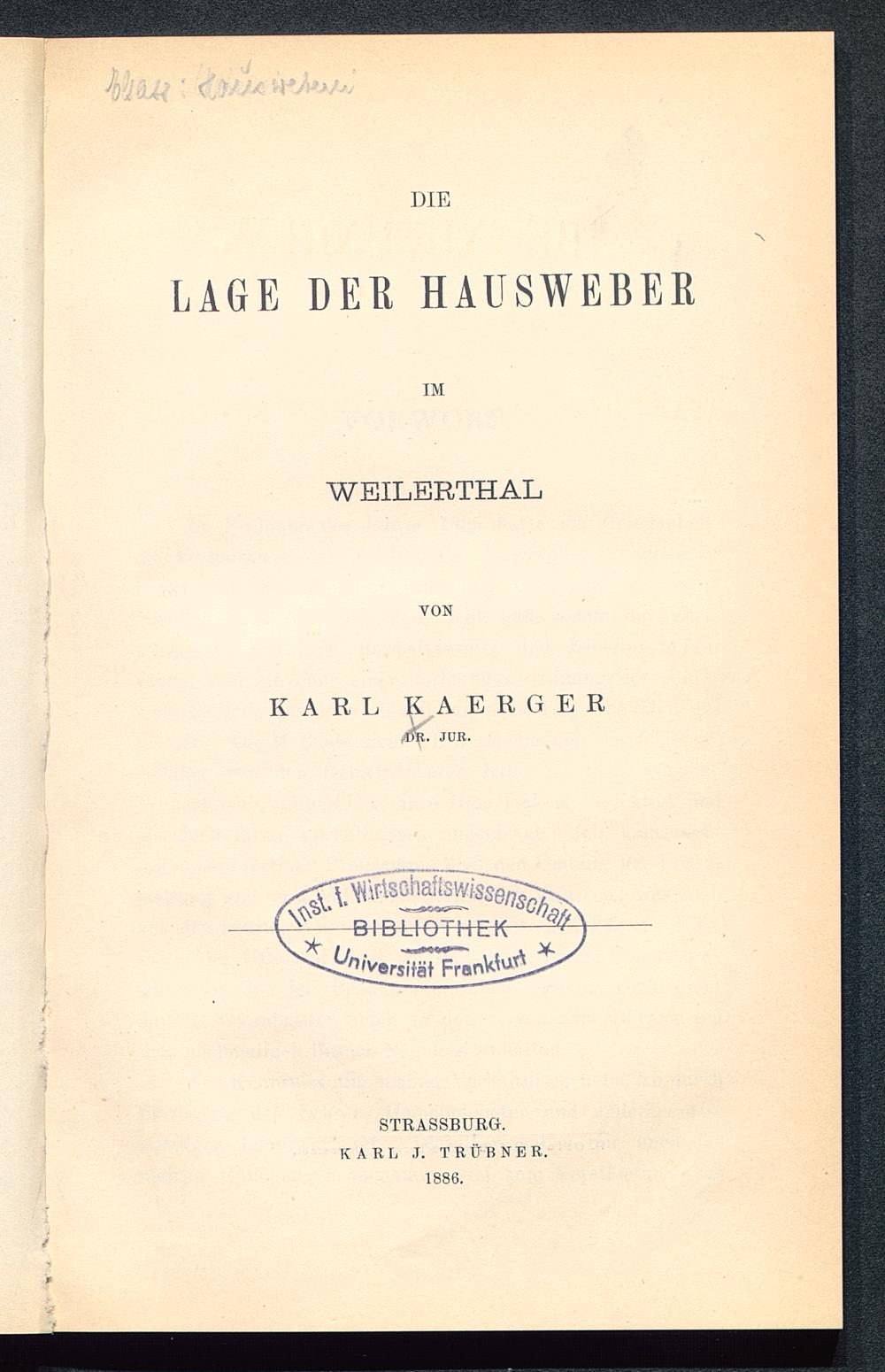 Die Lage der Hausweber im Weilerthal / von Karl Kaerger