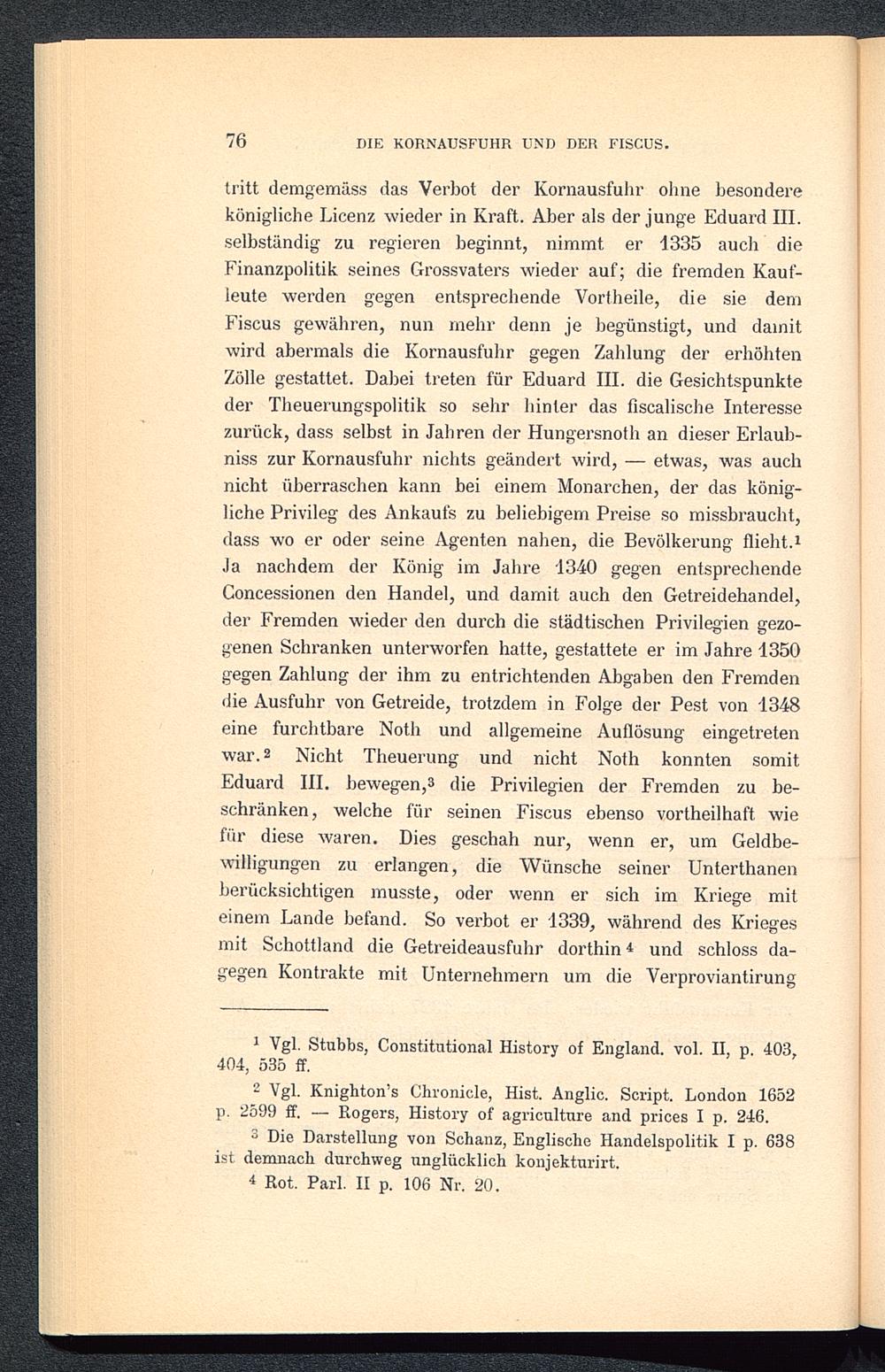 III. Die englische Getreidehandelspolitik von den Tudors bis zur Einführung der parlamentarischen Regierung