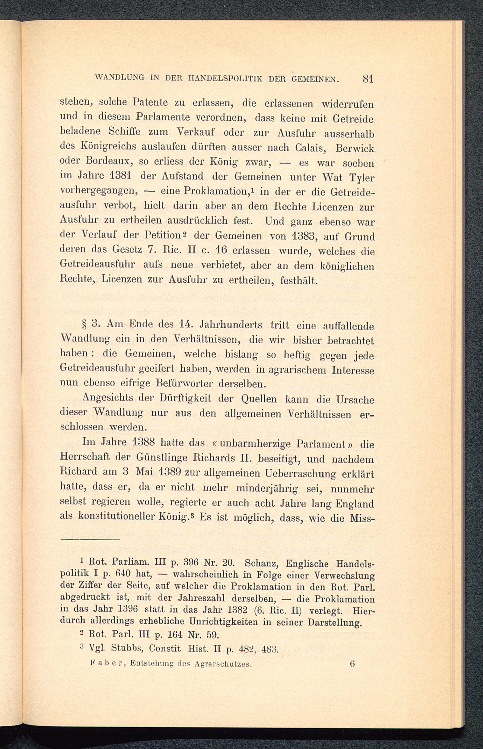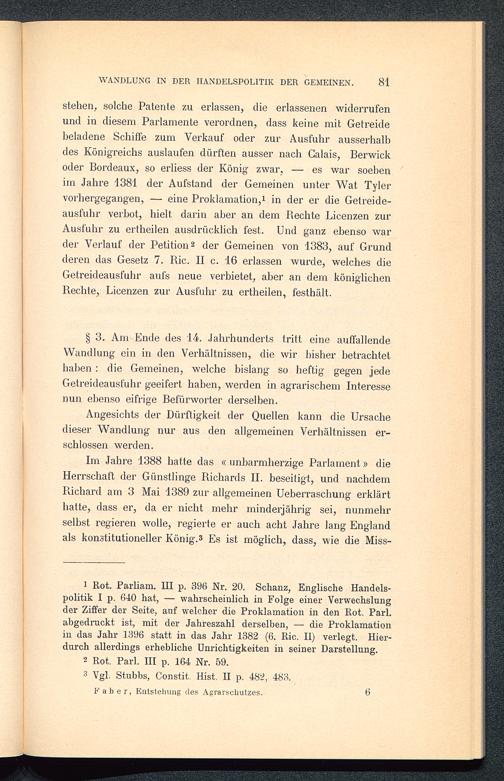 Die Entstehung des Agrarschutzes in England : ein Versuch / von Richard Faber