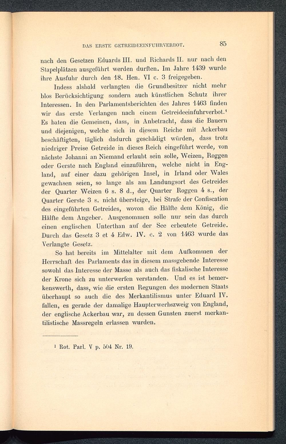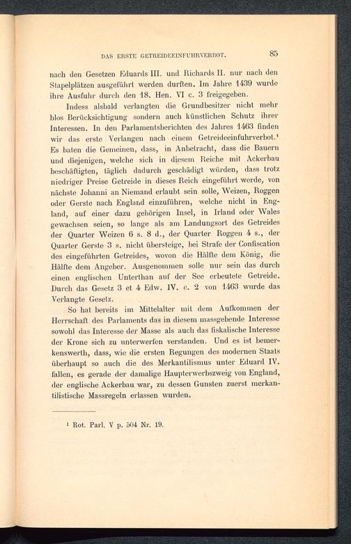 III. Die englische Getreidehandelspolitik von den Tudors bis zur Einführung der parlamentarischen Regierung