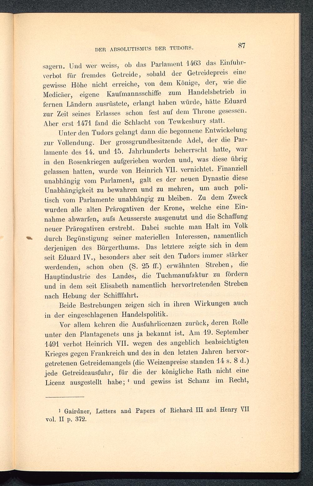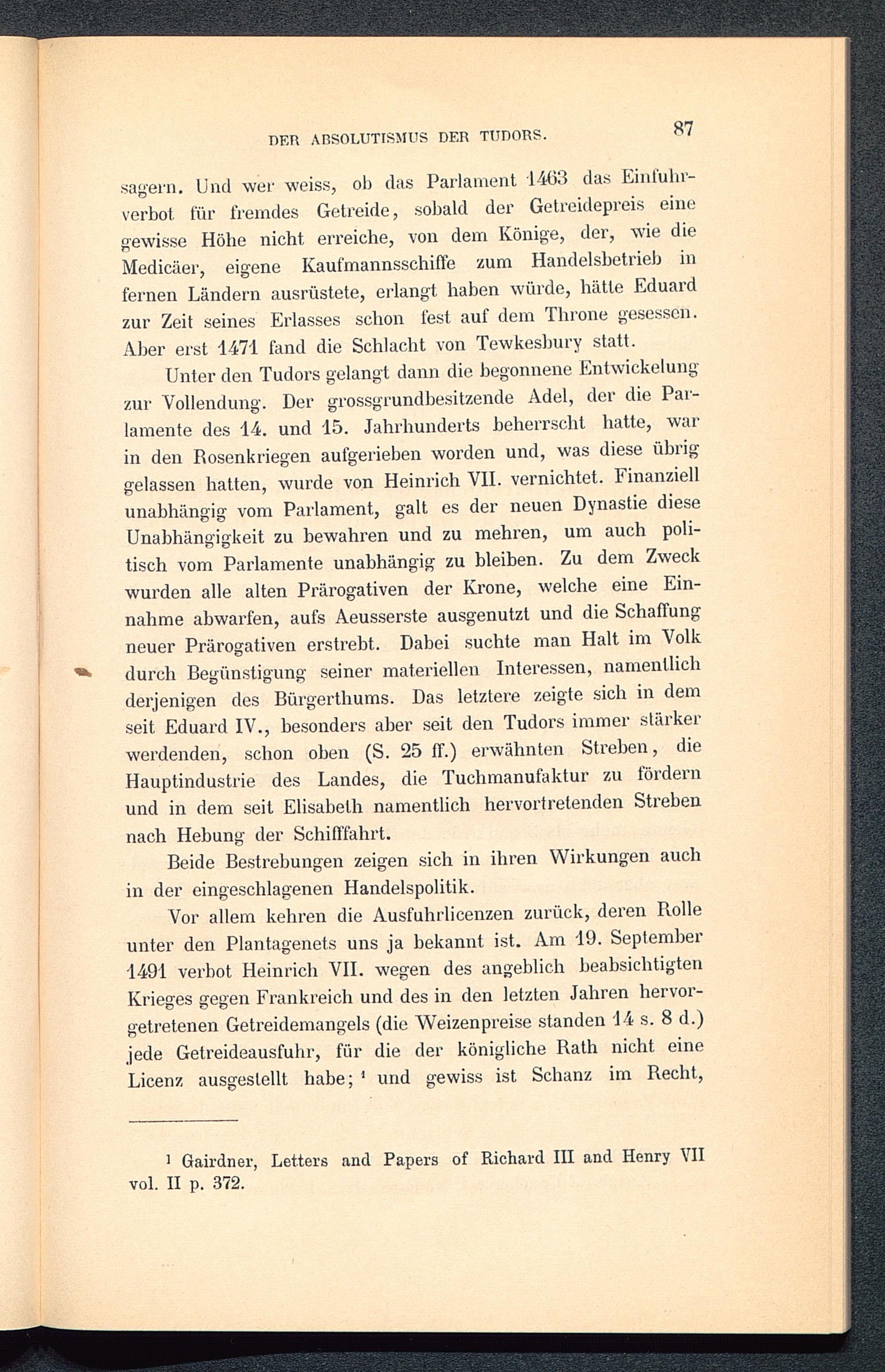 III. Die englische Getreidehandelspolitik von den Tudors bis zur Einführung der parlamentarischen Regierung