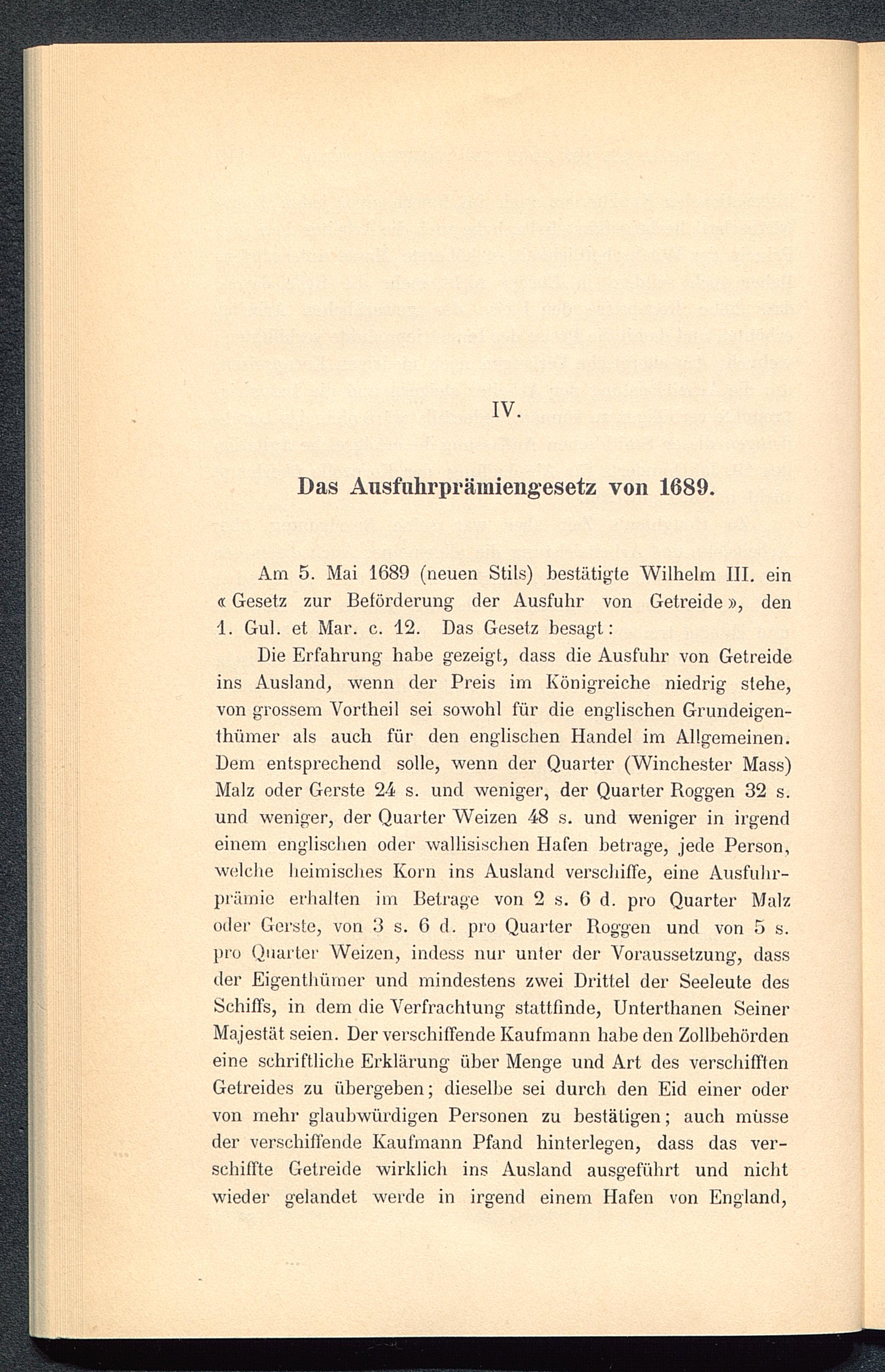 IV. Das Ausfuhrprämiengesetz von 1689