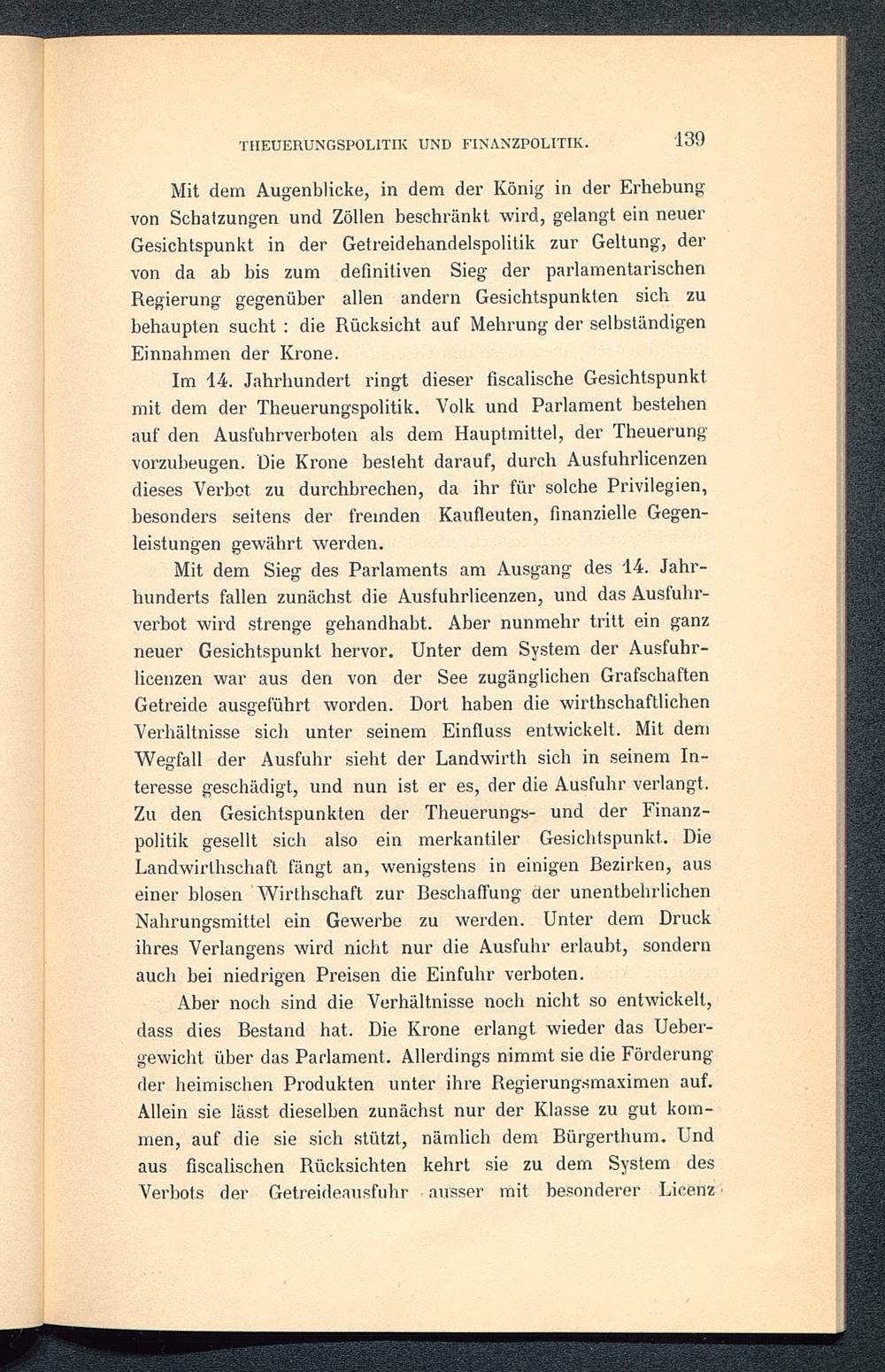 III. Die englische Getreidehandelspolitik von den Tudors bis zur Einführung der parlamentarischen Regierung